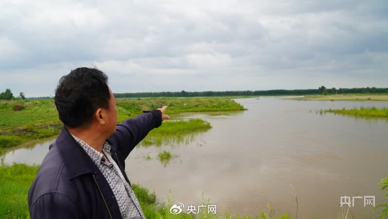 大雨剛過,洮兒河水面快漫上河床。河岸上,十幾位村民在釣魚,河對岸還有人拉網捕魚。
