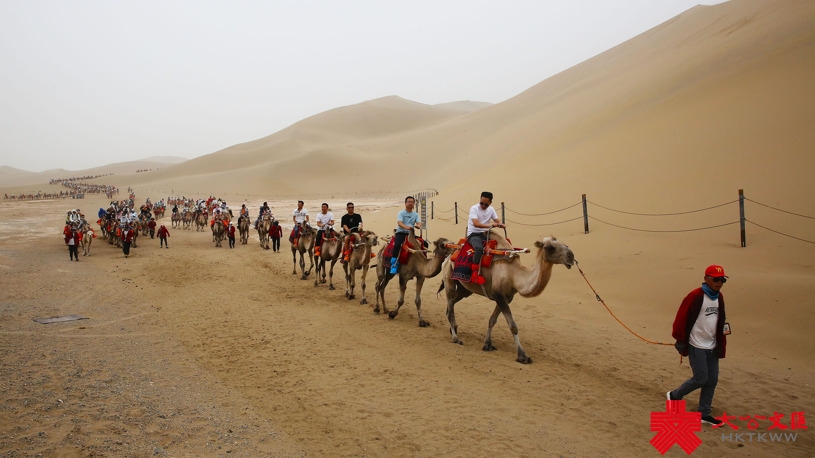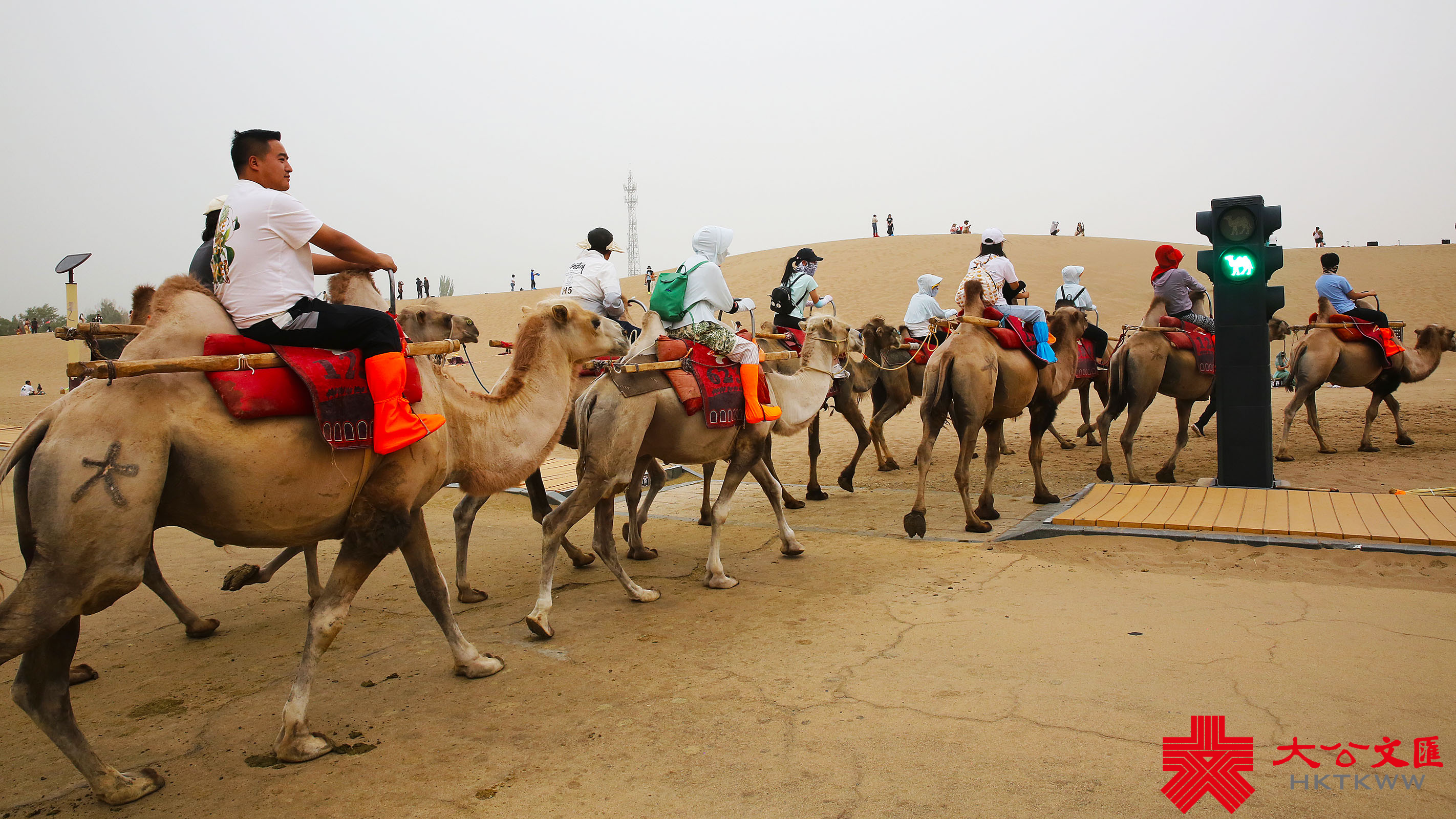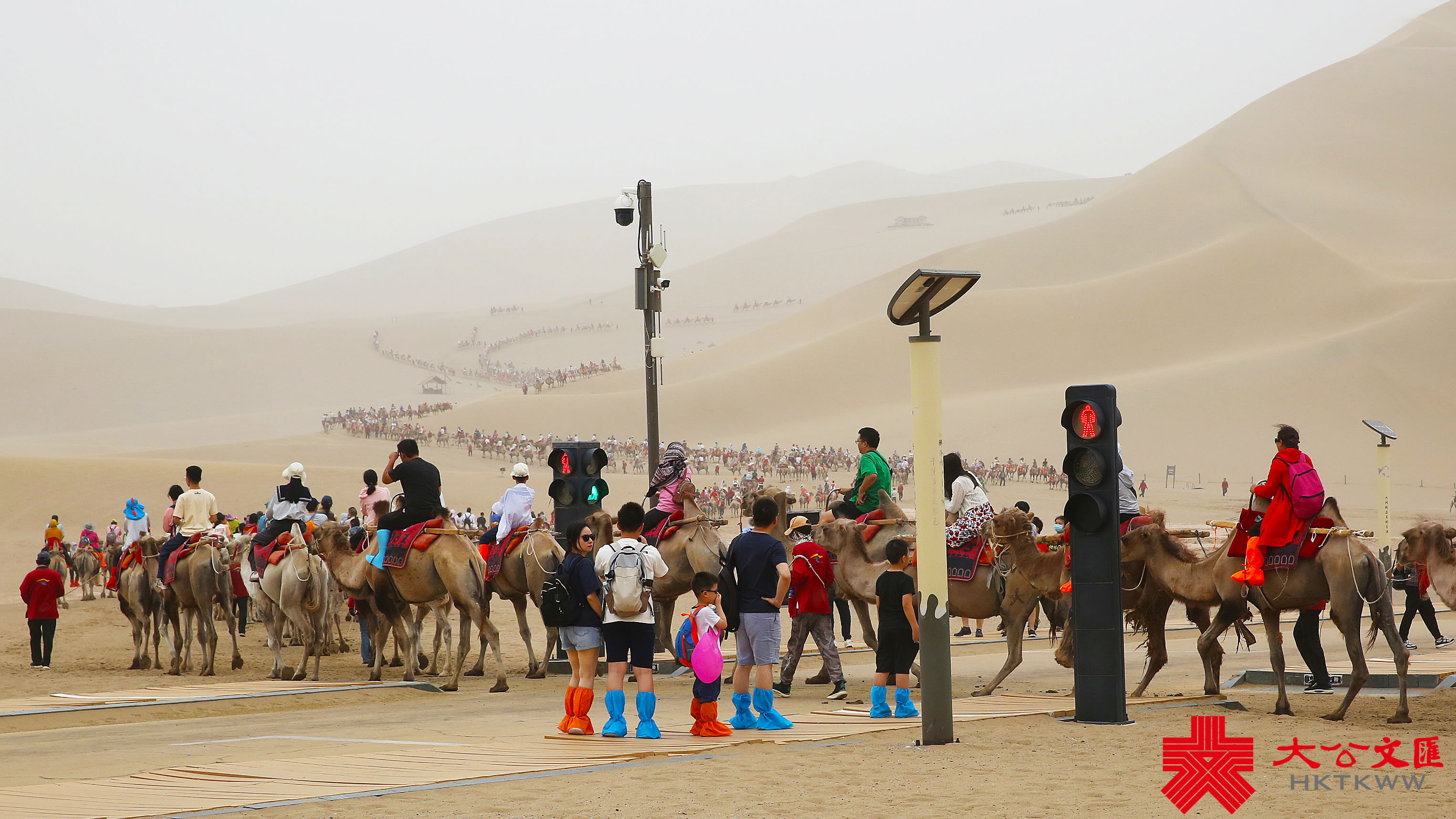 (大公文匯網記者 郭濤)隨着暑期到來,甘肅敦煌的旅遊人數不斷攀升。在鳴沙山月牙泉景區,遊客騎着駱駝,沿着鳴沙山腳下穿行,場面十分壯觀。以前只有在小長假期間才會出現的「堵駱駝」現象,這兩天已經成為常態。在行人步道和駱駝通道兩個交叉點設置「駱駝紅綠燈」成為新晉網紅打卡地。