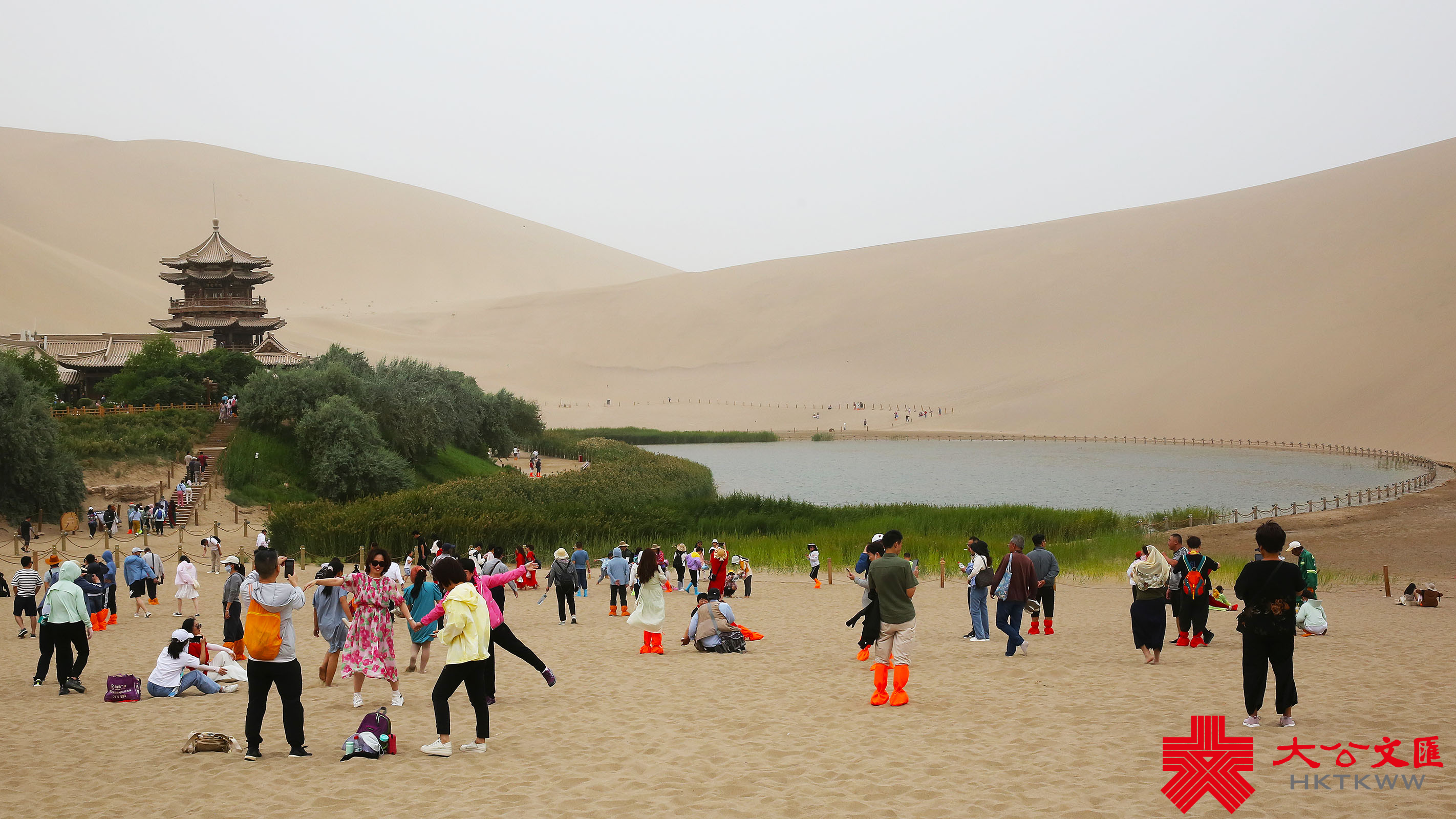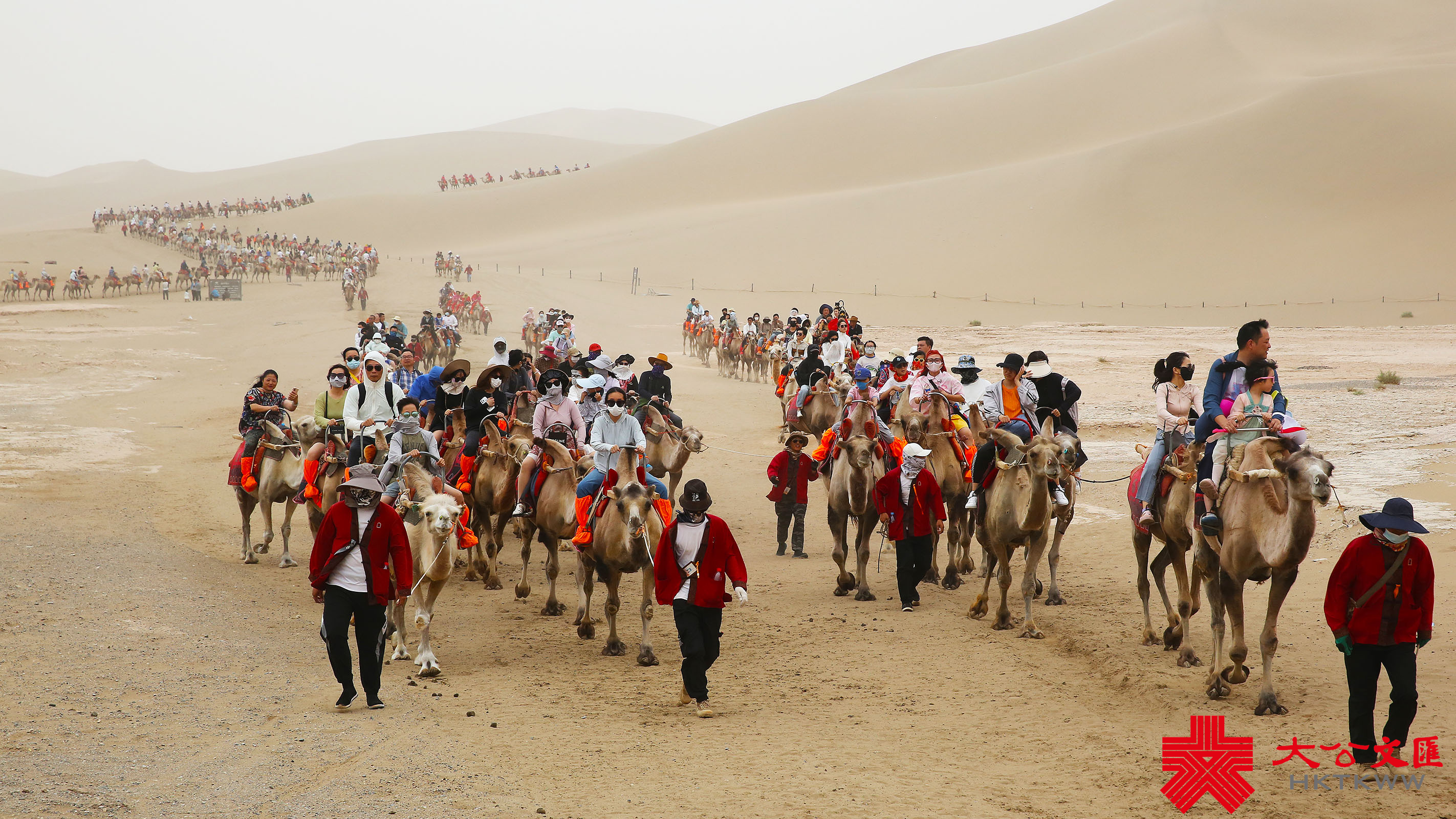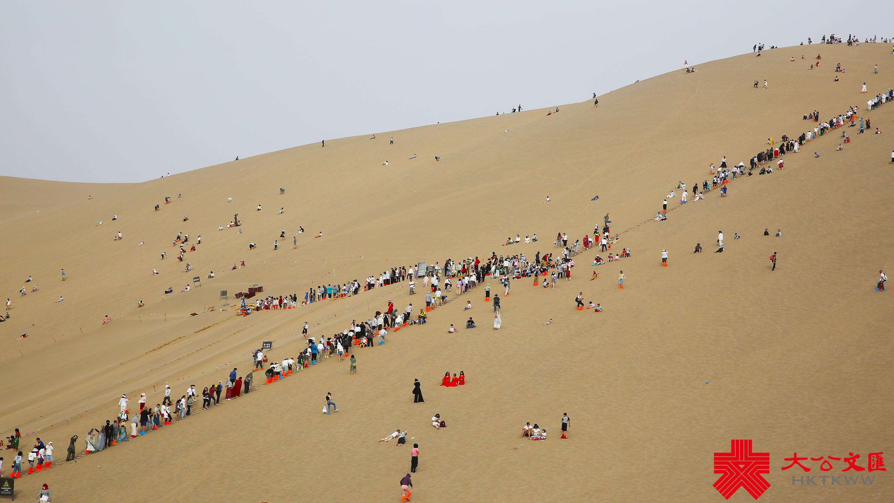(大公文匯網記者 郭濤)隨着暑期到來,甘肅敦煌的旅遊人數不斷攀升。在鳴沙山月牙泉景區,遊客騎着駱駝,沿着鳴沙山腳下穿行,場面十分壯觀。以前只有在小長假期間才會出現的「堵駱駝」現象,這兩天已經成為常態。在行人步道和駱駝通道兩個交叉點設置「駱駝紅綠燈」成為新晉網紅打卡地。