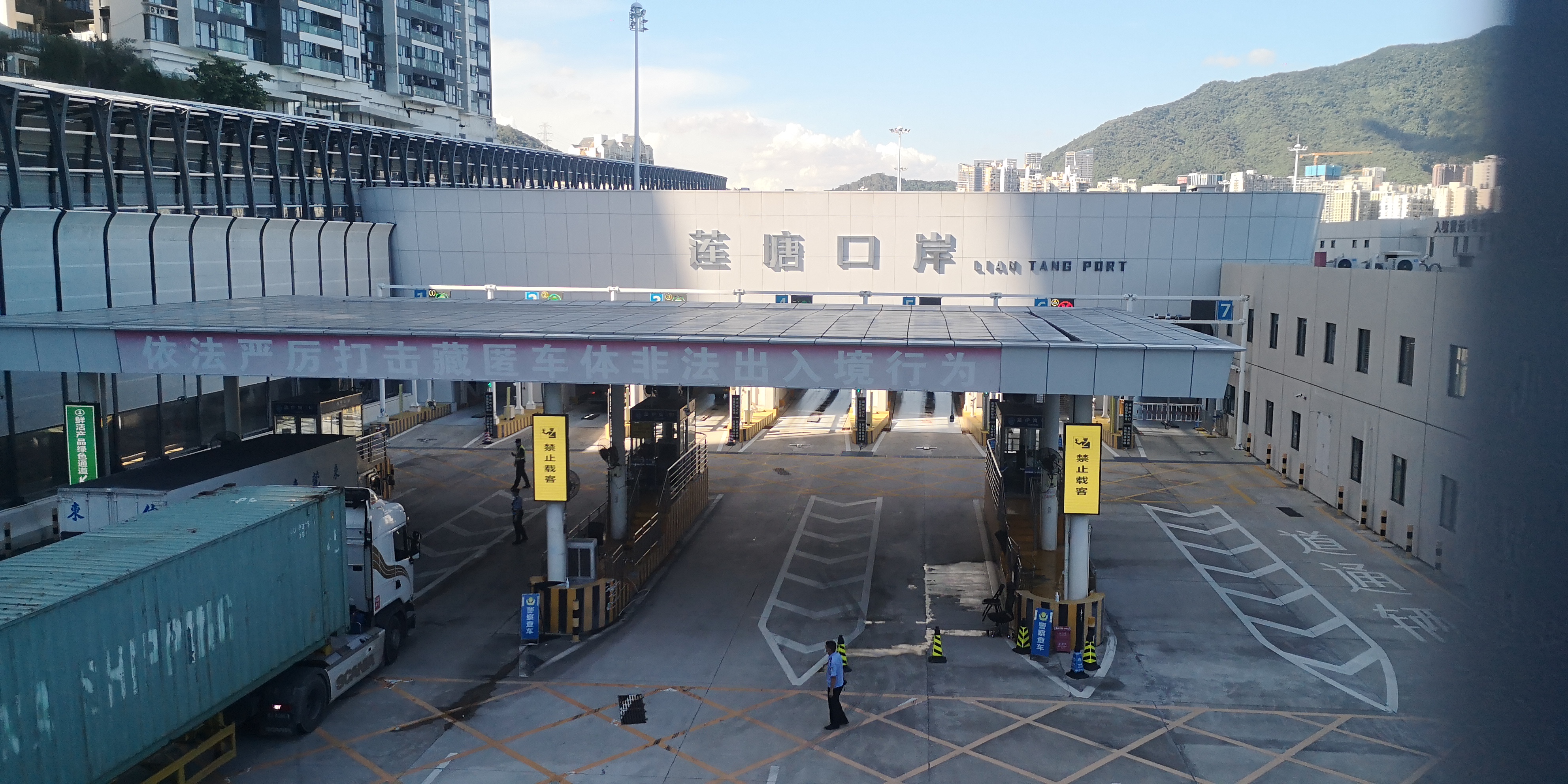 10日16時,記者趕到蓮塘口岸入境通道發現,多名工作人員現場指揮,入境車輛通關現場順暢,並未出現排隊的現象,車輛不到一分鐘就可完成通關手續。