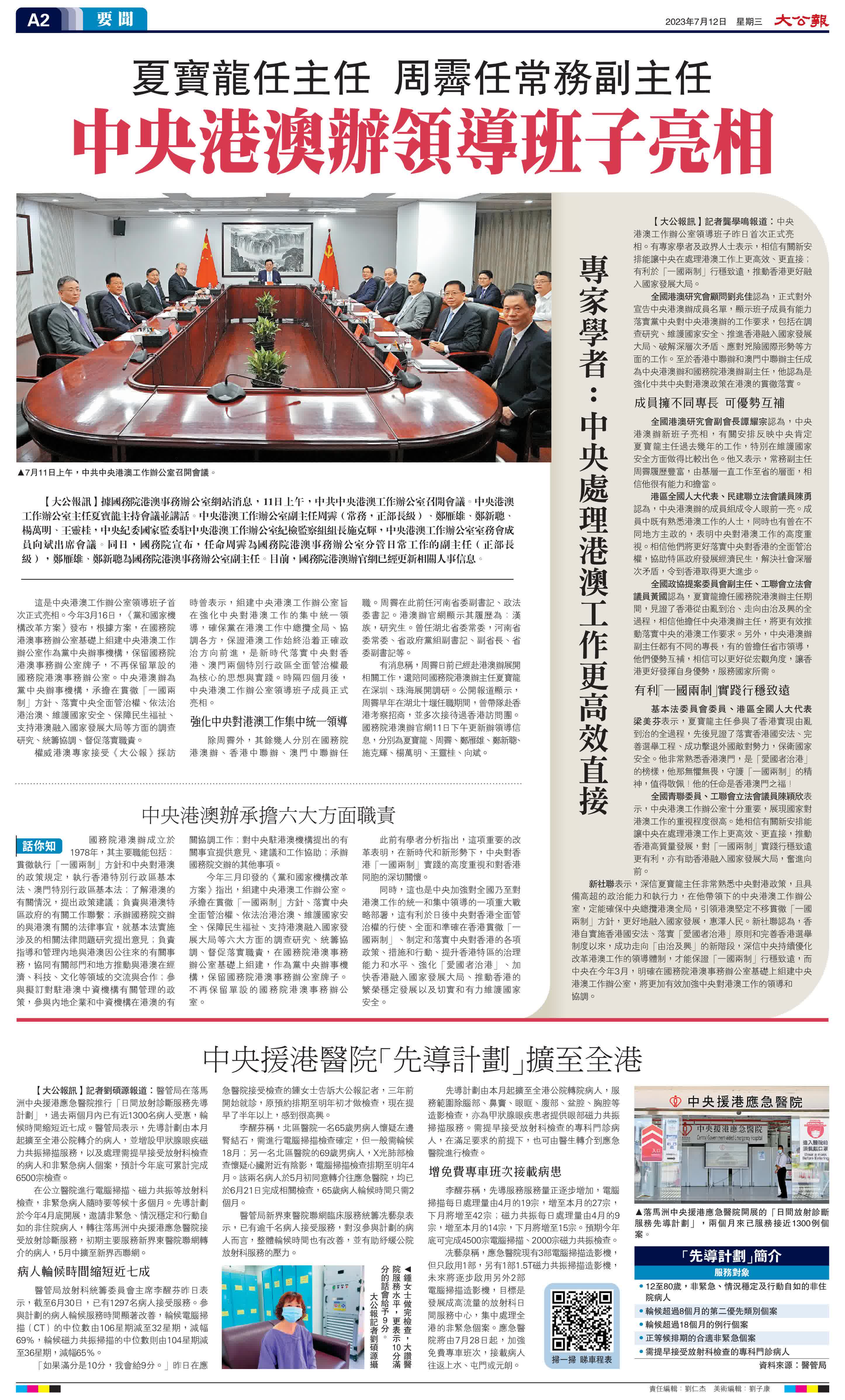 (來源:大公報A2:要聞 2023/07/12)
