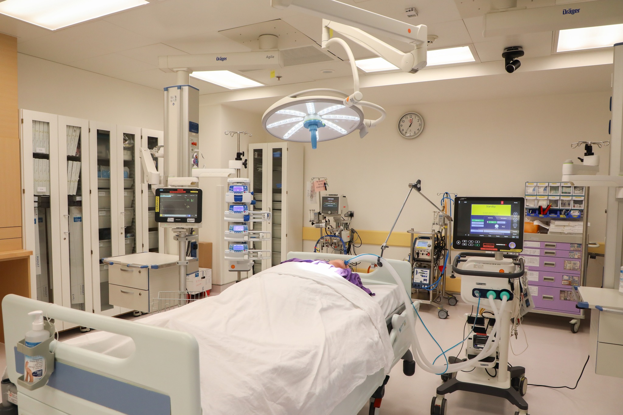 此外,包括全新治療室,T8設有全新治療室,佔地約700平方呎,用作為危重或創傷病人進行初步治療,也可用於處理複雜的病症。治療室的牆身全面鋪設鉛板,讓醫護同事可以為有需要的病人進行放射影像監控下的治療程序;中央監察系統,T8護士站設有六部大屏幕,實時顯示ICU病人的維生指數,密切留意病人身體情況任何異動,為有需要病人迅速提供適切治療。