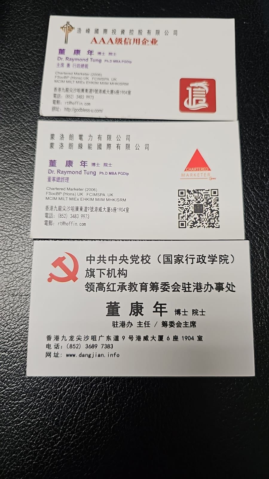 然而,據大公文匯全媒體讀者分享多張疑似董康年的名片,上面印有浩峰國際投資控股有限公司主席兼行政總裁,若然屬實,或會給人一種左手交右手的感覺。至於卡片上印有的http://godbless-u.com/,記者發現,網站無法顯示任何內容,難以判斷真偽。