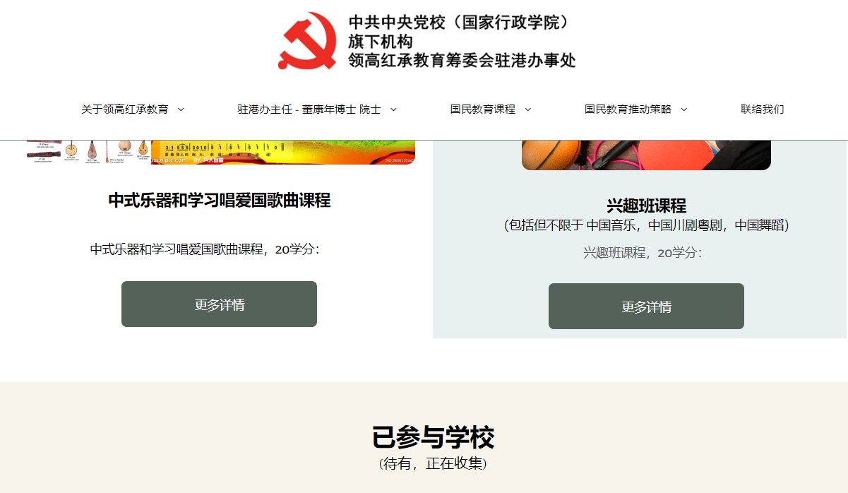 領高紅承教育更聲稱每年設有10人配額到北京中央黨校學習,費用為8萬元,包括入住釣魚台國賓館,學習一星期,以及參觀黨校不讓部分外賓內進的地方。當大公文匯全媒體記者尋找已參與學校,網站只顯示「待有,正在收集」,意味着目前未有學校和領高紅承教育合作。