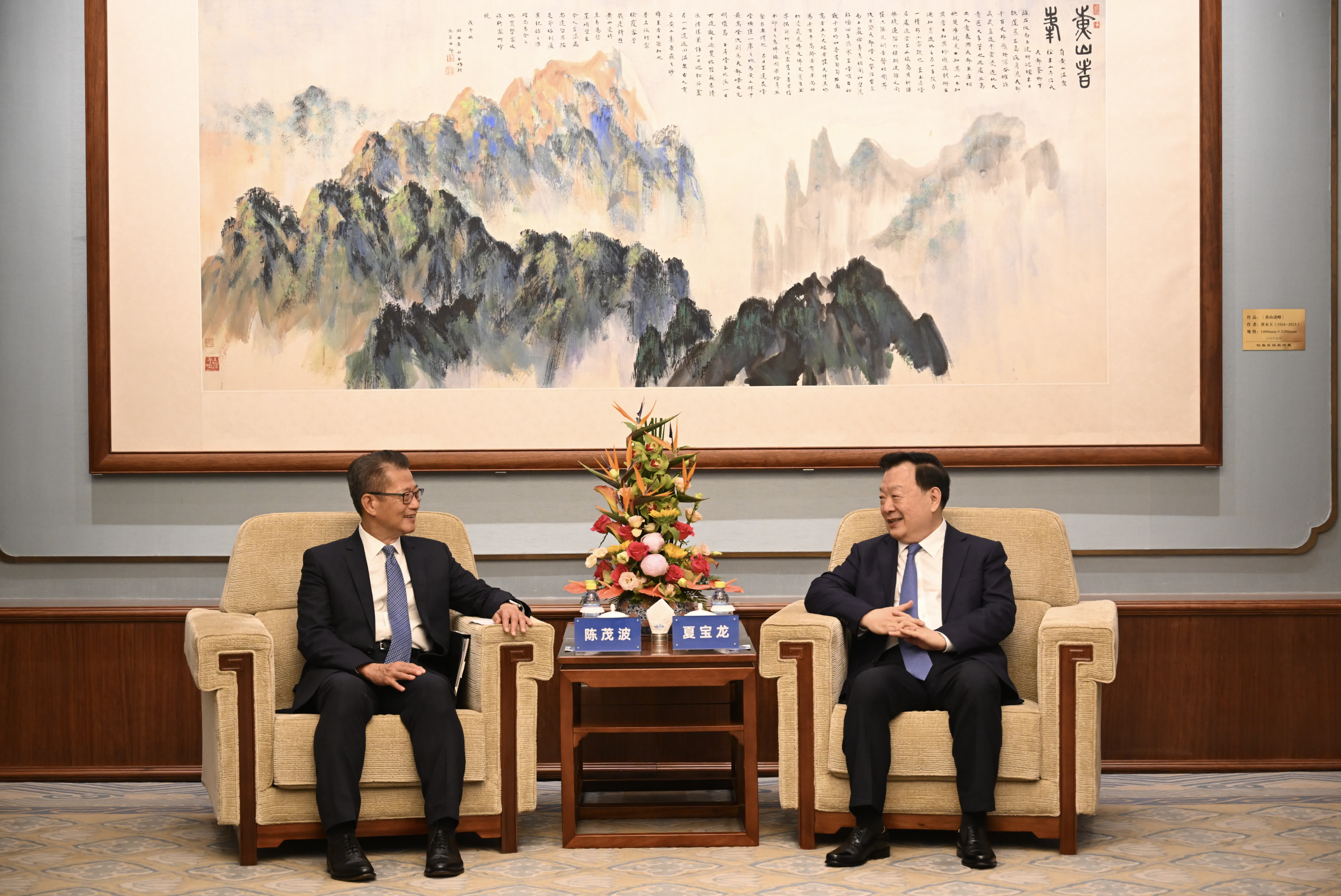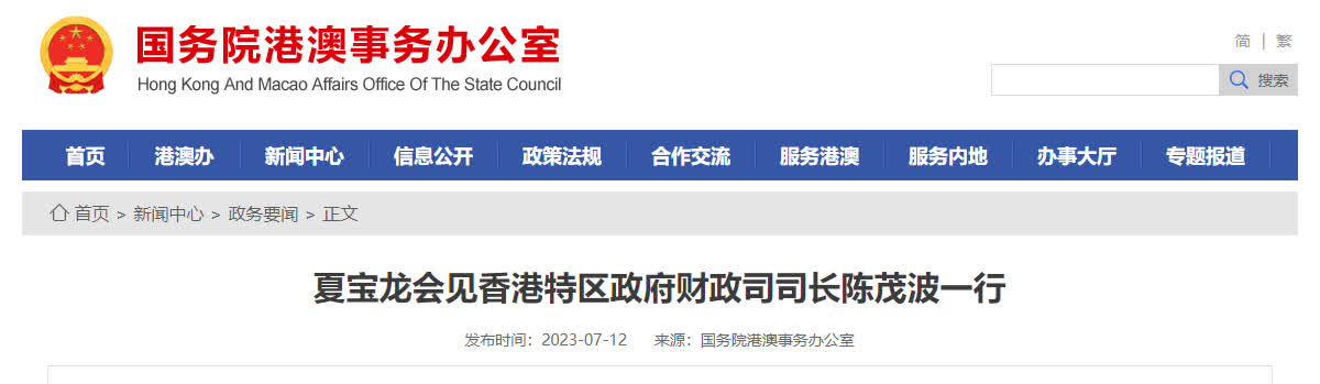 今日(7月12日)上午,國務院港澳事務辦公室主任夏寶龍在北京會見香港特區政府財政司司長陳茂波一行。