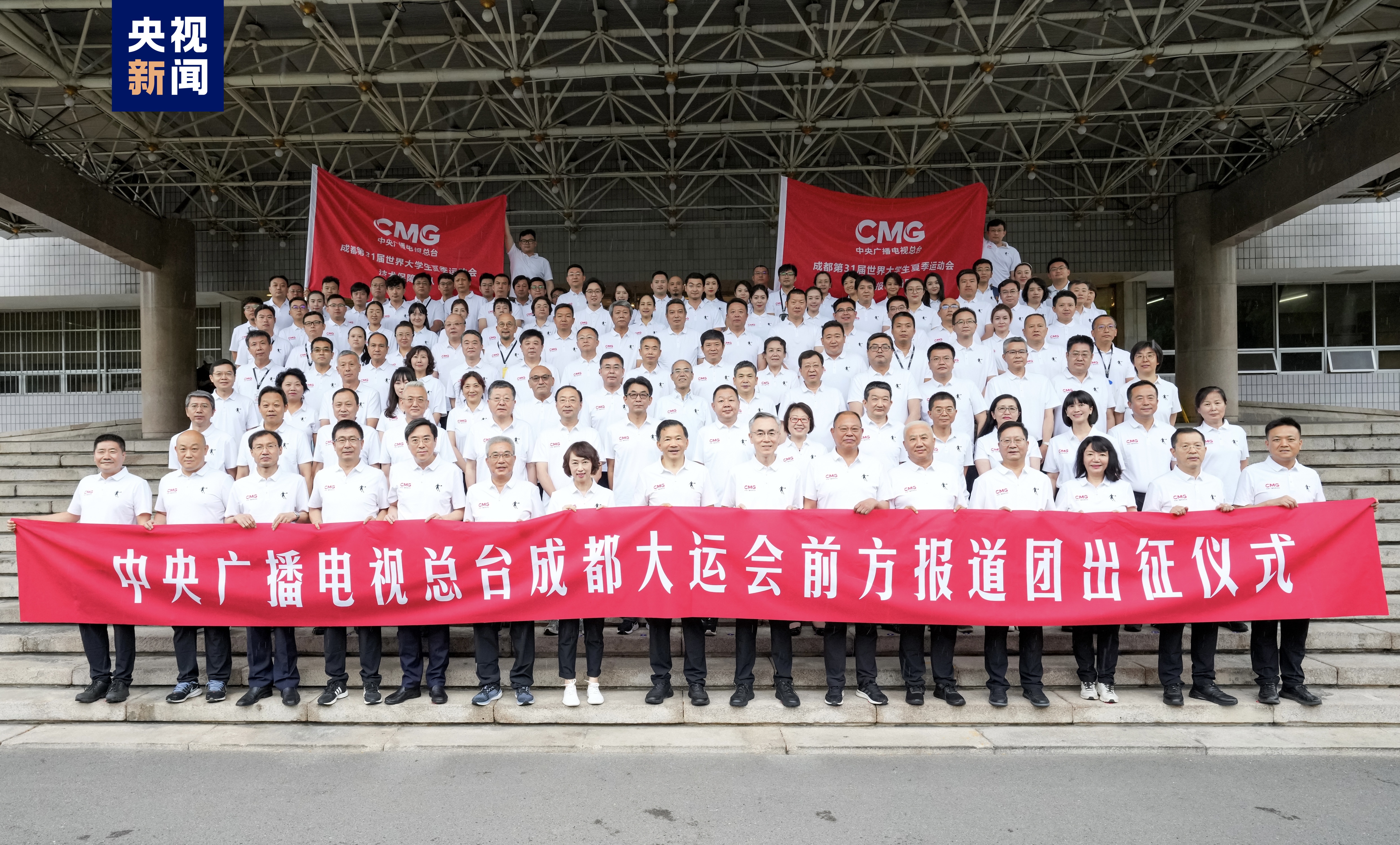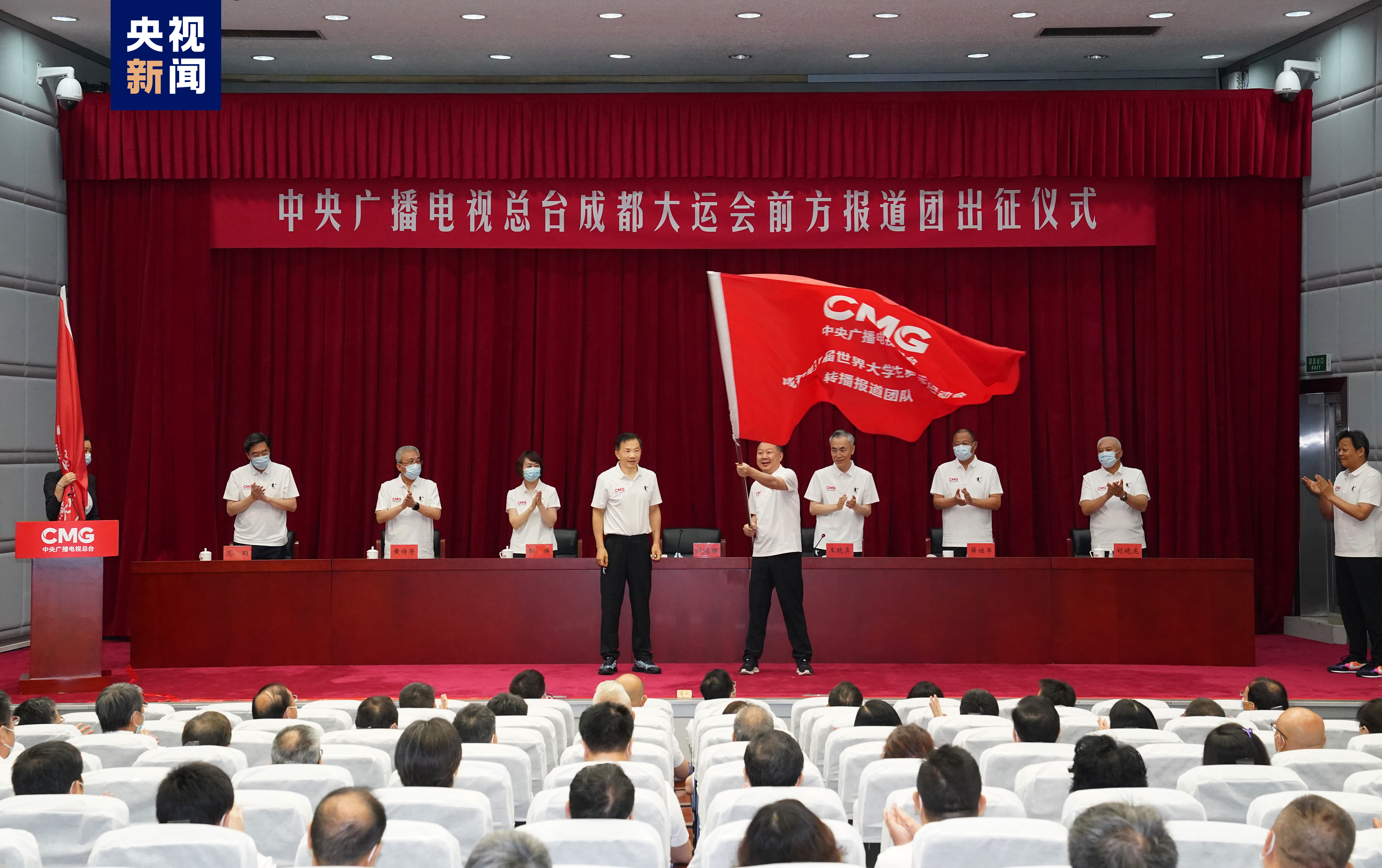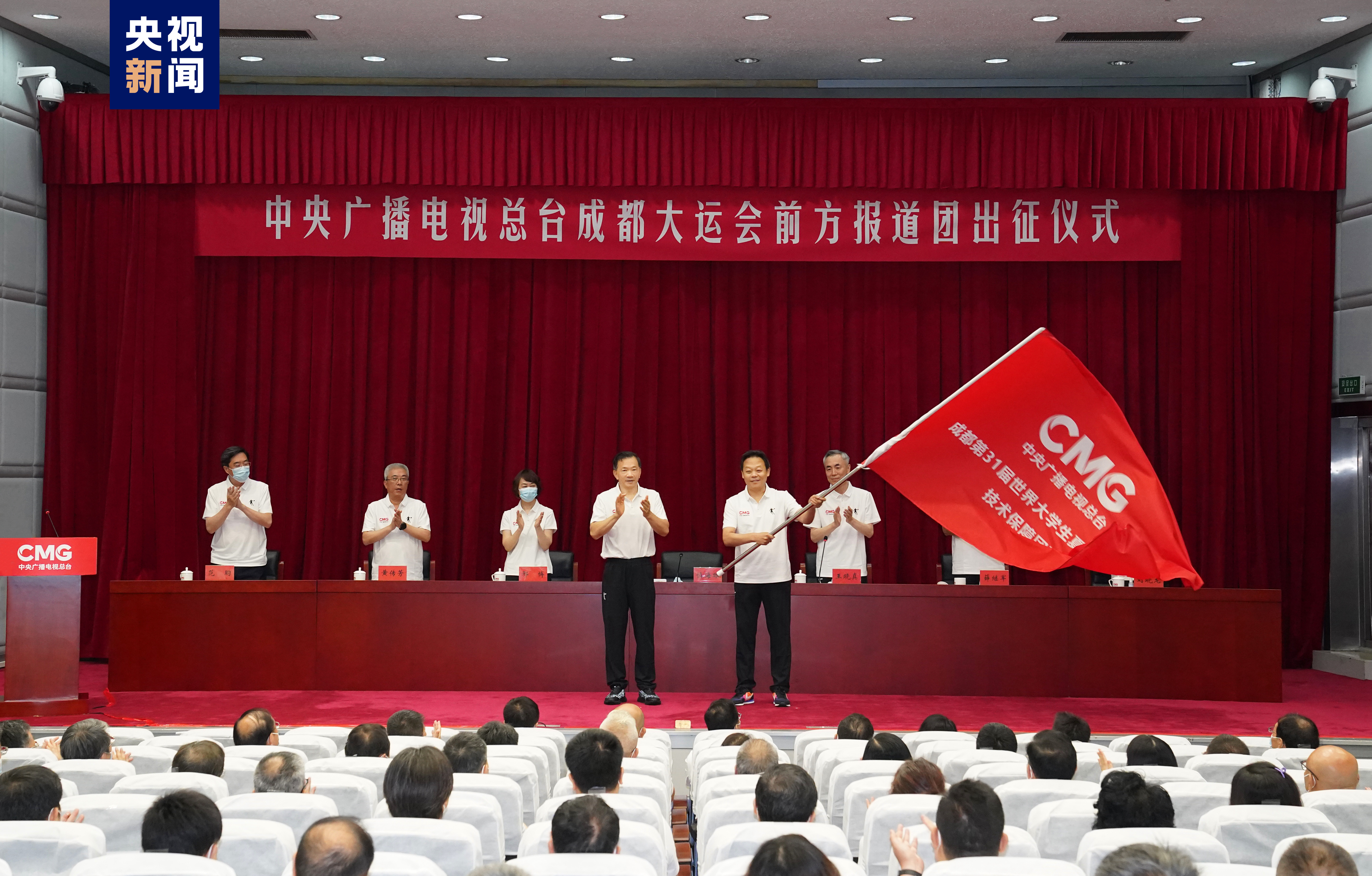 7月12日,中央廣播電視總台舉行成都大運會前方報道團出征儀式,總台將派出2500人的報道和轉播團隊。中宣部副部長、中央廣播電視總台台長慎海雄作動員講話,並向轉播報道團隊、技術保障團隊授旗。總台副台長王曉真主持出征儀式,總台副台長邢博出席。