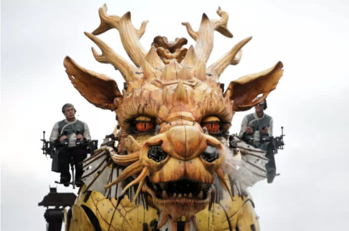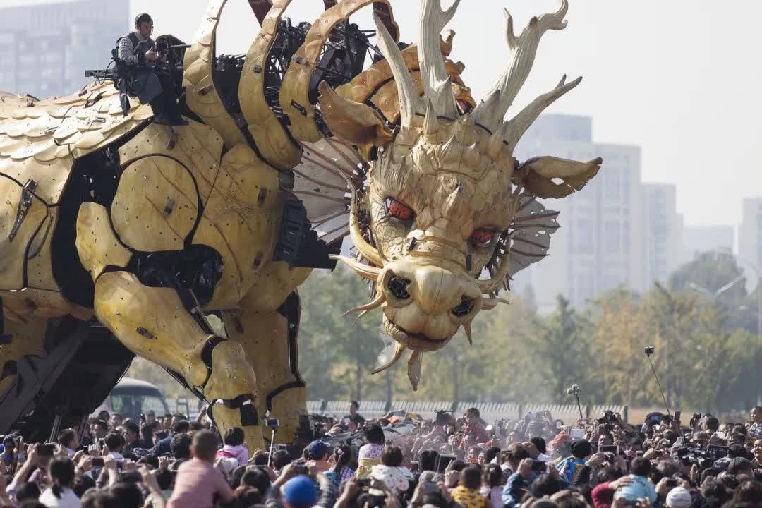 「龍馬精神」是以龍首馬身,融合現代高科技的巨型機械藝術品(重達50吨),可謂氣勢宏偉,神彩靈動。「龍馬精神」是爲慶祝中法建交50周年,由百餘位中法兩國藝術家和工程師合力打造的藝術品。