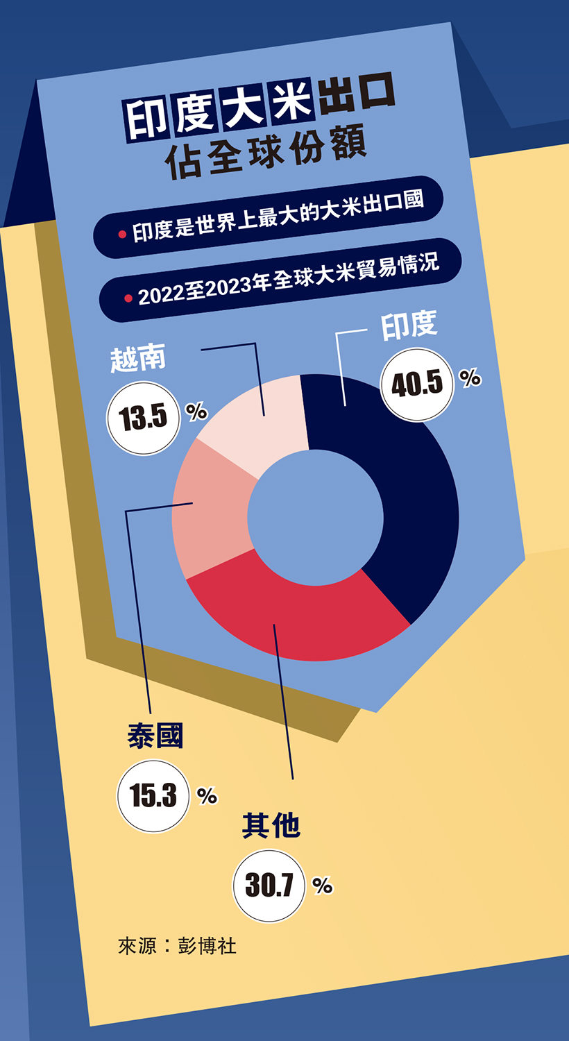 大公報綜合彭博社、路透社、《金融時報》報道:全球最大的大米出口國印度正在考慮禁止出口大多數品種的大米,可能當地涉及80%的大米出口。目前,全球大米價格已升至11年來的最高水平,印度政府為抑制國內糧食通脹提出的這一舉措,可能會令本已高企的全球大米價格持續走高。另外,受厄爾尼諾現象影響,亞洲地區今年的水稻收成將進一步受到影響。