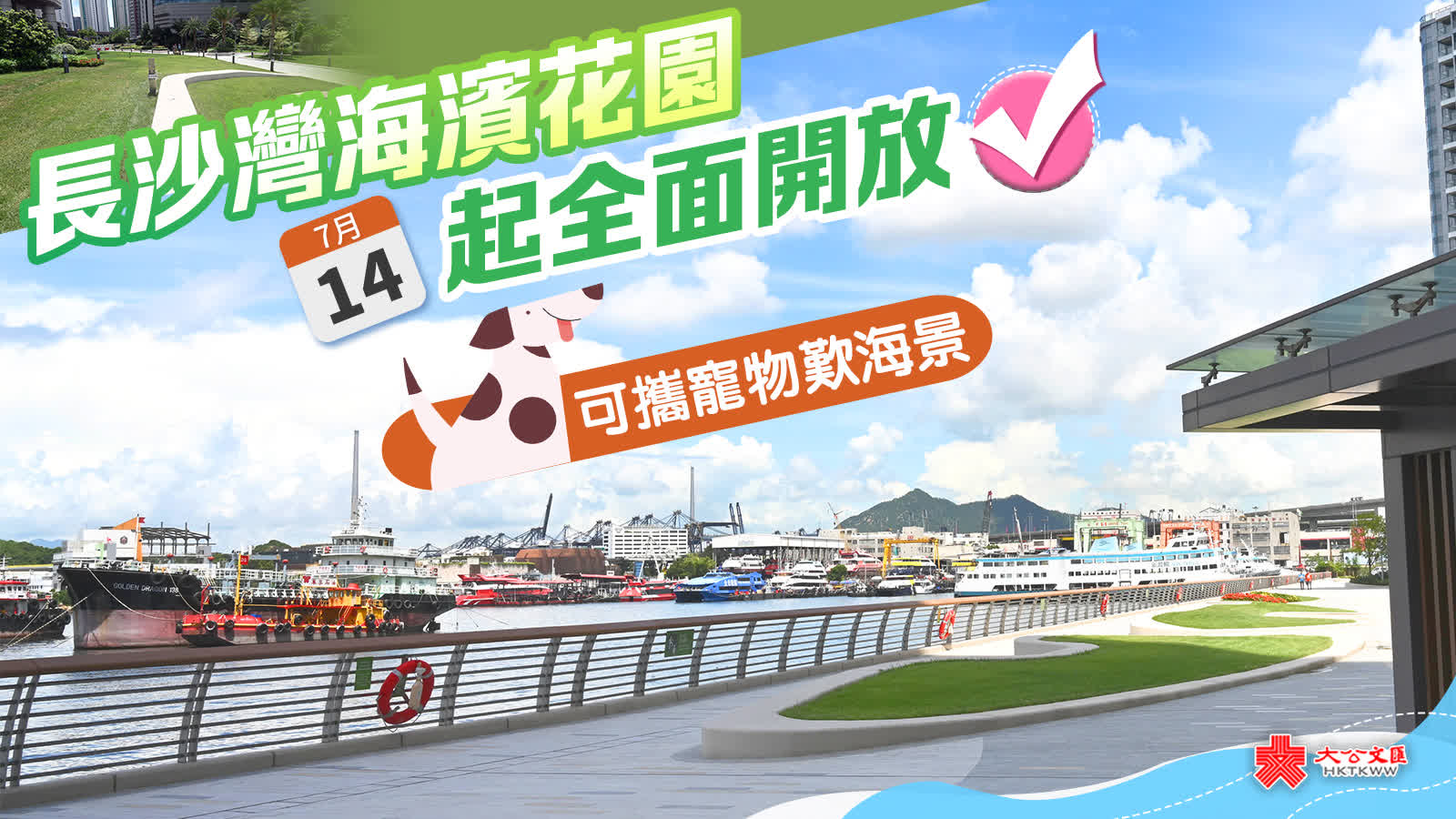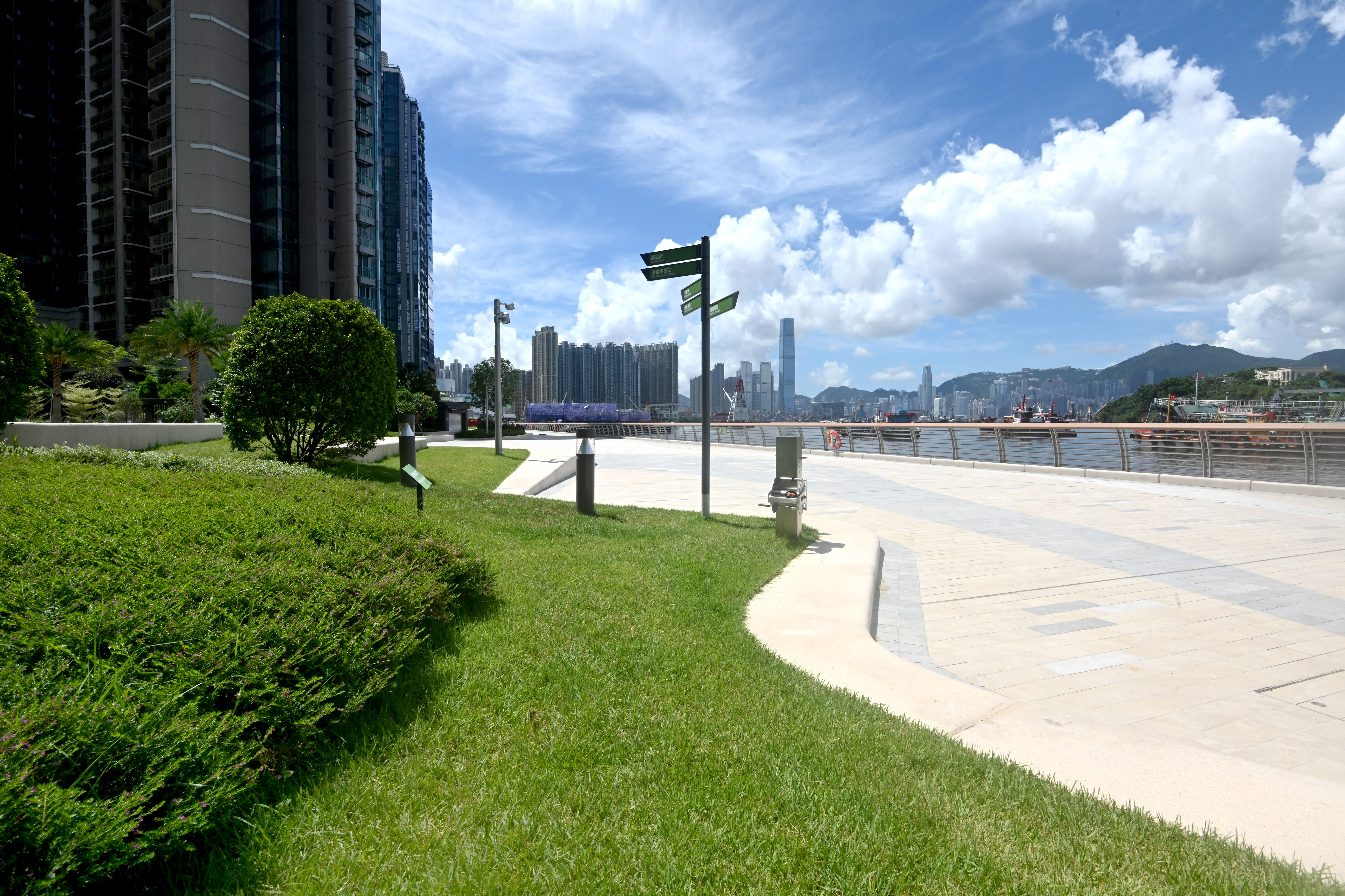 大公文匯全媒體報道,康文署今日(14日)宣布,新落成的深水埗區長沙灣海濱花園,包括海濱長廊及公共休憩空間,已全面開放予公眾使用。海濱花園佔地約1.04公頃,當中包括園景區及草坪,同時亦是「寵物共享公園」,攜同寵物入內的市民和其他使用者可在共融環境下使用公園設施。