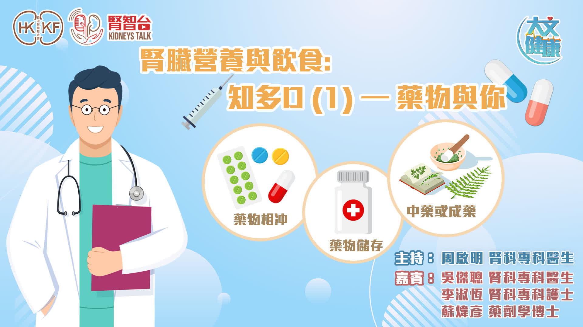 答:藥物除了可以控制血壓和血糖,亦可從而減低患上相關併發症的機會。曾有腎病病人遵從醫生的指示,定時、定量服藥,減鹽、減重、減磅,最終大大減少了所需服用藥物的數量。因此,病人毋須過分擔心需要長期打針、服藥,病人應信賴醫生的判斷,定時、定量服藥和打針,才能有效控制病情。若有任何疑問,應向醫生及藥劑師查詢,瞭解藥物及其與病情的關係。
