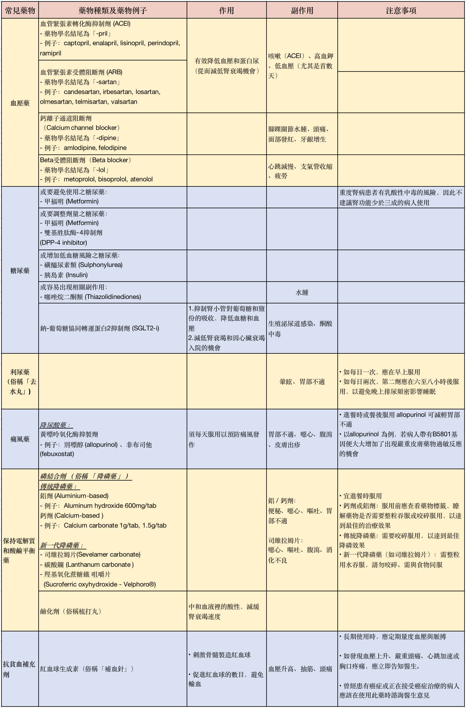 腎病病人常見藥物