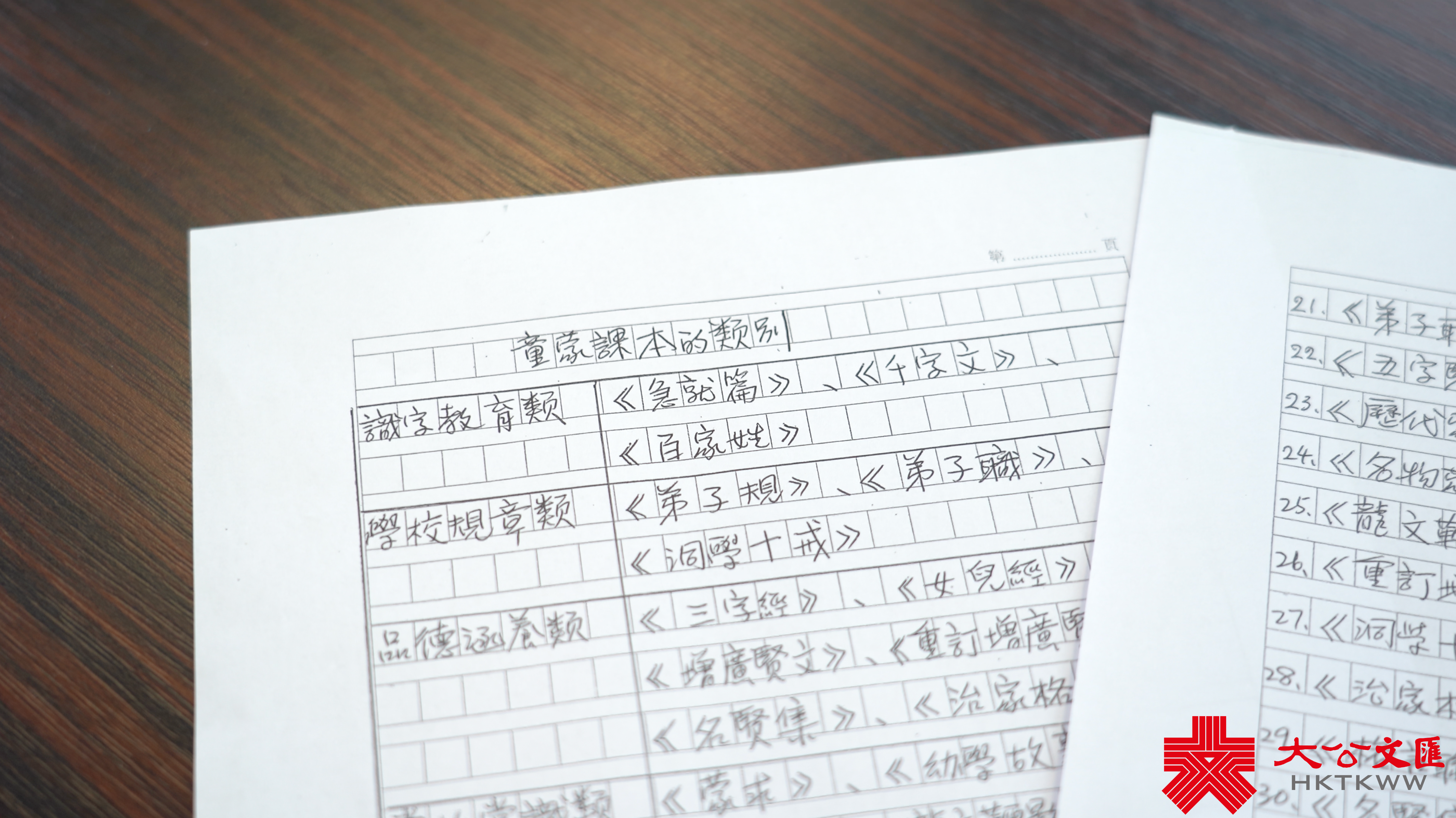 中國古時的蒙學,一般是為八九歲的兒童而設。蒙學課本稱為「蒙書」,也叫做「蒙養書」,可以追溯到先秦時期。最早的蒙學識字課本是成書於西漢的《急就篇》,內容包括姓氏、衣着、農藝、自然等,基本涵蓋漢代社會生活各方面。周教授對三十餘本童蒙課本進行了研究,集成著作《童蒙啟程》,並在書中將蒙學課本分為五類,從基礎的識字教育、學校規章及品德涵養,漸進到歷史常識和詩歌聲韻的學習。周教授表示,書中的分類可以方便學校老師在進行教學時,從浩瀚的材料中快速找到自己需要的篇章,從而加以準備。