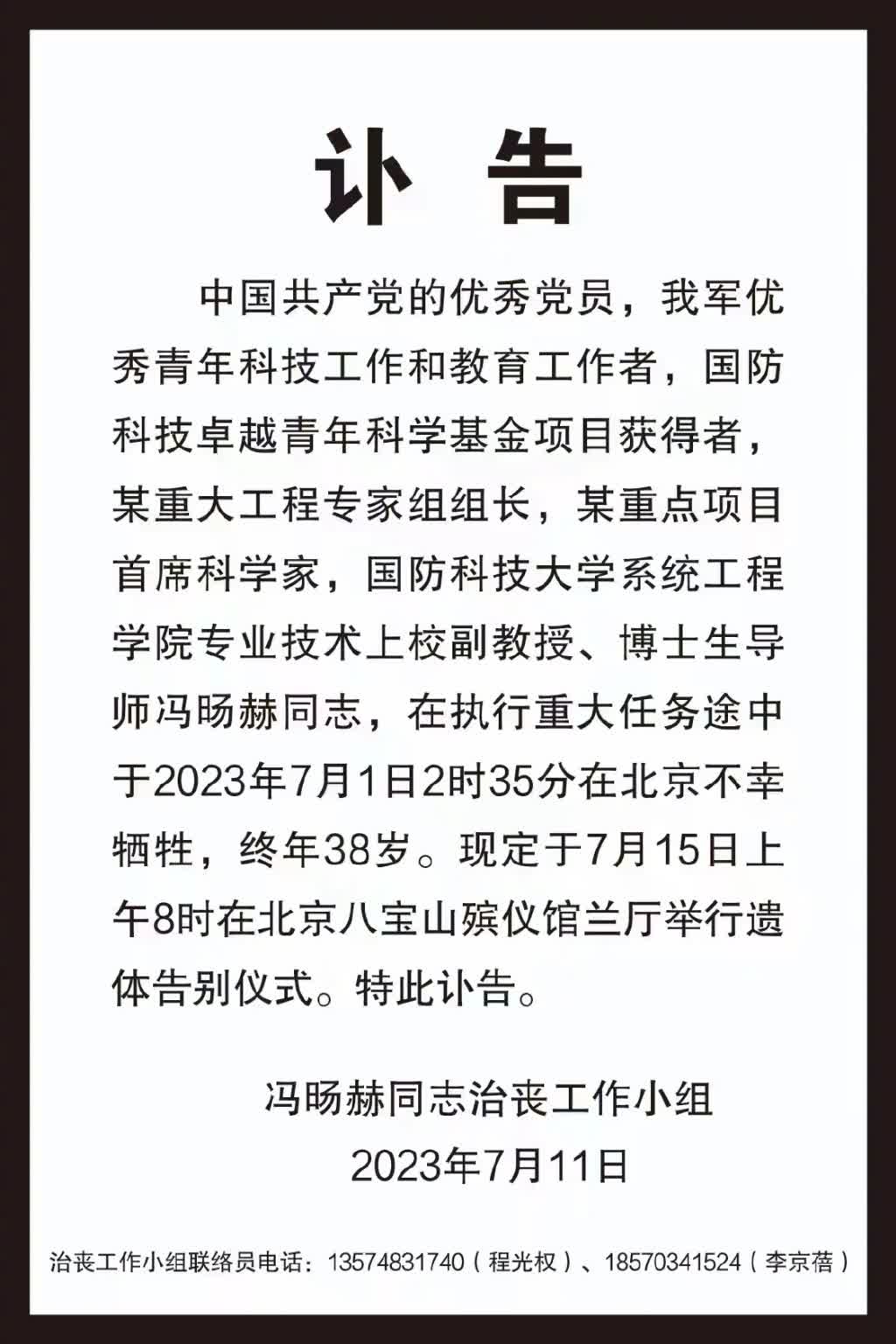 據中國人工智能學會微信公眾號今日(15日)消息,2023年7月1日,我國著名指揮控制和人工智能領域專家、國防科技大學系統工程學院副教授博士生導師馮暘赫先生在北京因車禍不幸逝世,英年38歲。
