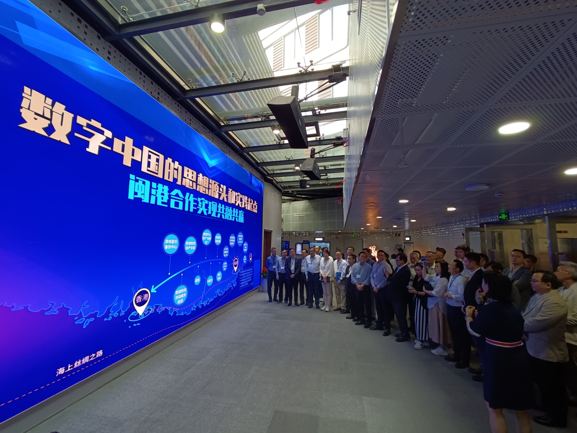 在調研參觀過程中,嚴剛表示,他對福州新區濱海新城規劃展示館印象最為深刻,福建市場廣闊,以福州新區為例,其正構建從數字技術底座、創新平台賦能、行業領域應用的全鏈路數字產業,嚴剛建議香港在推進北部都會區建設時可以借鑒福州新區的發展經驗。而福建完善的新型基礎設施建設也加快了數字經濟時代的閩港合作。