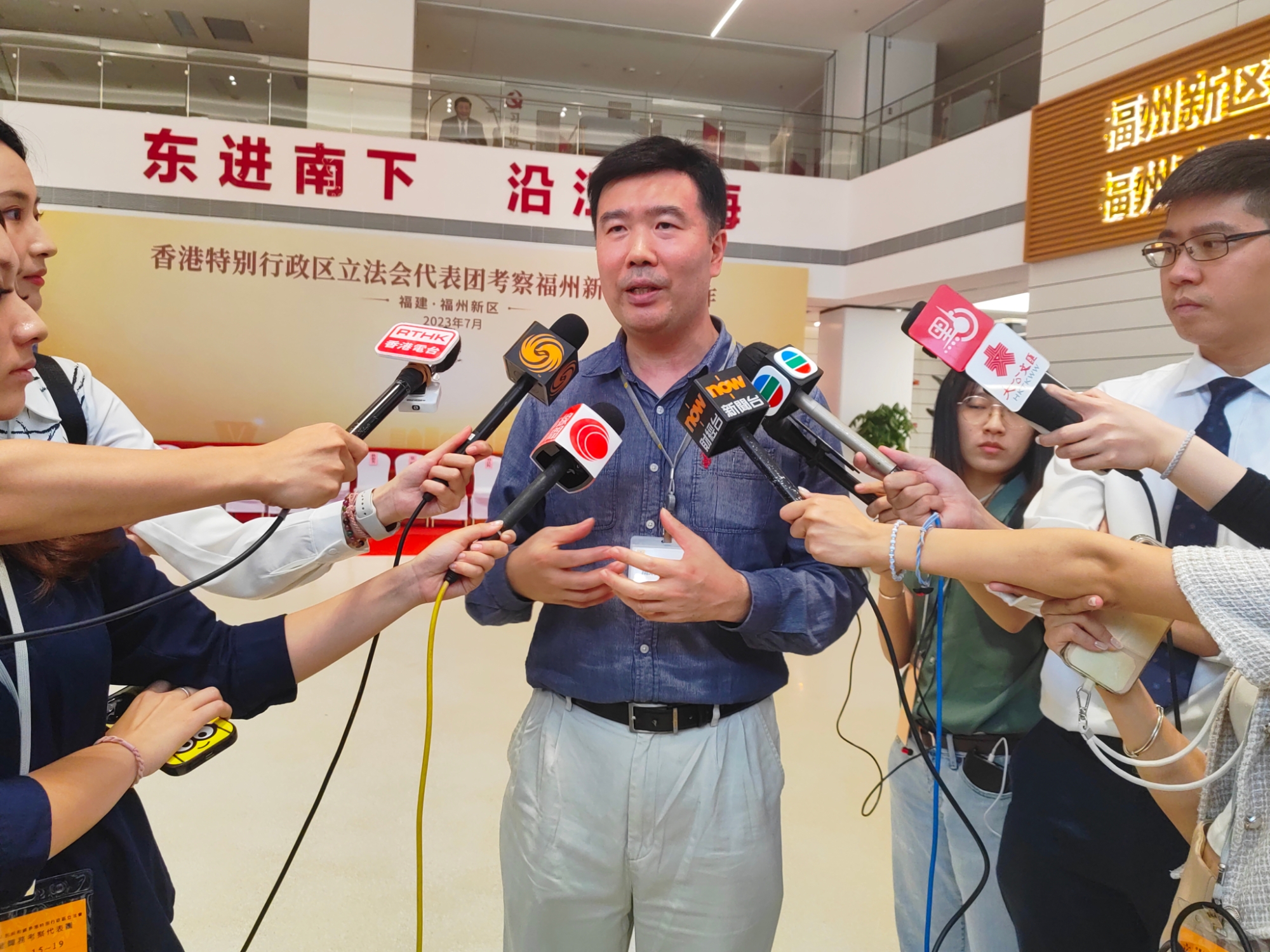 當日下午,香港特區立法會代表團(以下簡稱「代表團」)赴福州新區考察,依次調研福州新區濱海新城規劃展示館、數字福建雲計算運營有限公司、福建省恆申合纖科技有限公司、福州新區閩港合作諮詢委員會。科技創新、綠色低碳等是代表團成員們眼中福州新區高質量發展的「關鍵詞」。議員們受訪時都充滿信心地表示,相信未來香港將會與福建在既有的合作基礎上進一步緊密聯動,在科技產業深度融合、人才引育等方面都會有高水平的互利共贏發展。