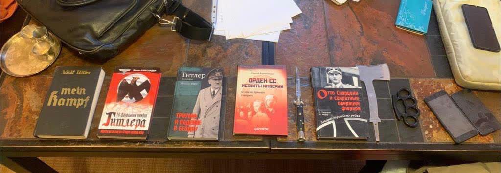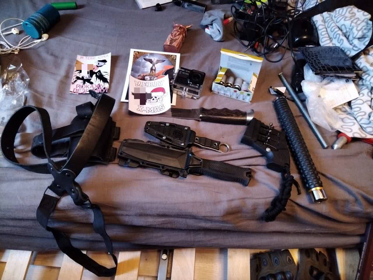 在調查期間,執法人員繳獲了一支卡拉什尼科夫自動步槍、90發子彈、刀具、指節銅環、橡皮警棍、手銬、帶有納粹標誌的徽章和旗幟、納粹文獻、以及載有證實其犯罪意圖信息的計算機和通信設備。