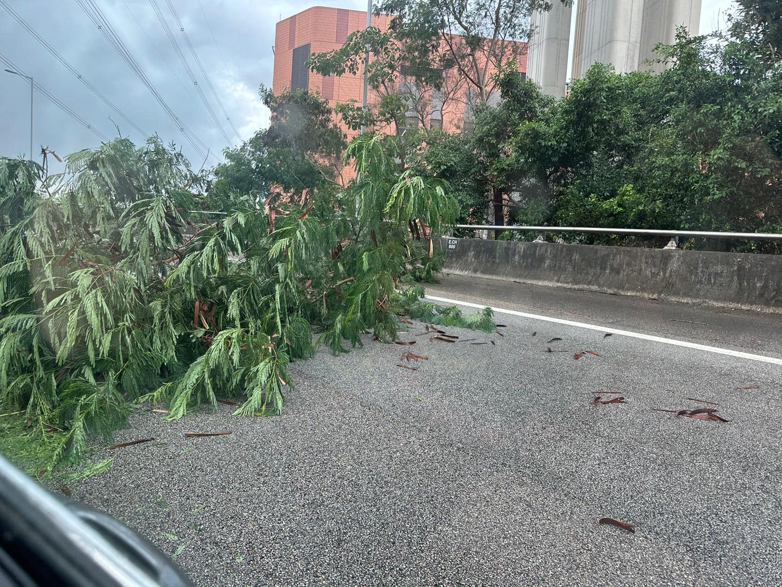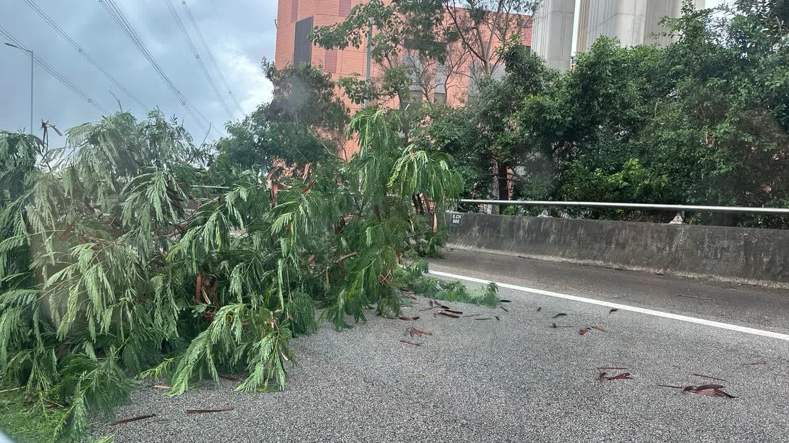 下午約3時37分,元朗公路往大欖隧道方向近安基司幼稚園有榻樹。