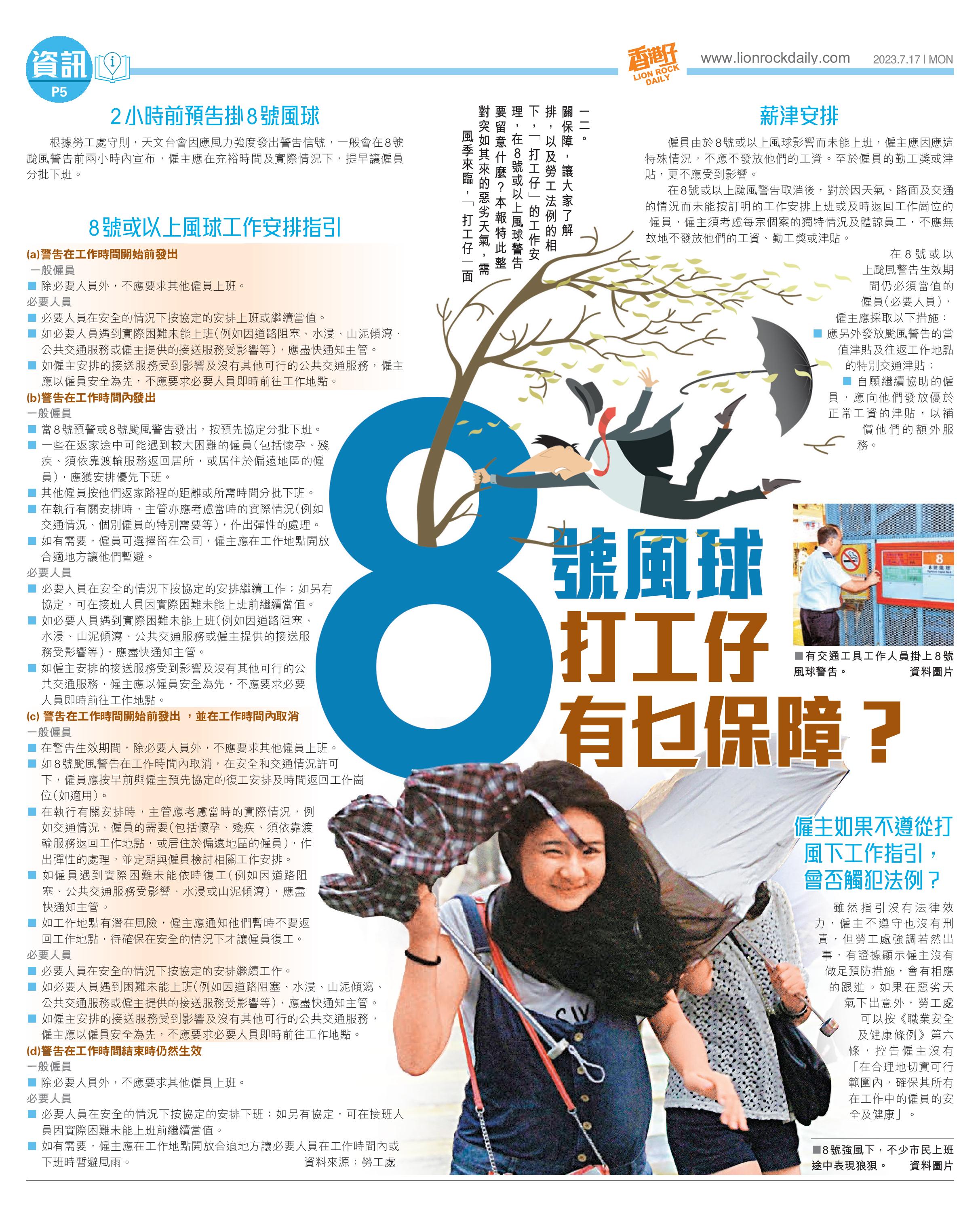 風季來臨,「打工仔」面對突如其來的惡劣天氣,需要留意什麼?香港仔特此整理,在8號或以上風球警告下,「打工仔」的工作安排,以及勞工法例的相關保障,讓大家了解一二。