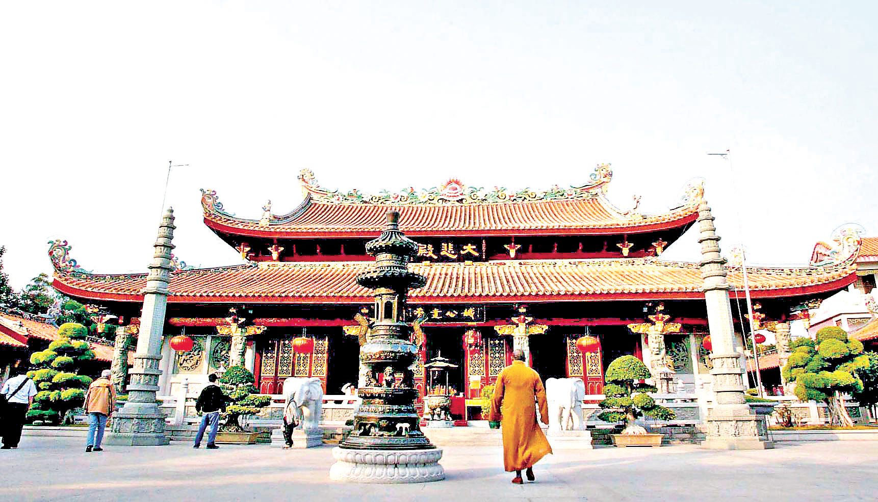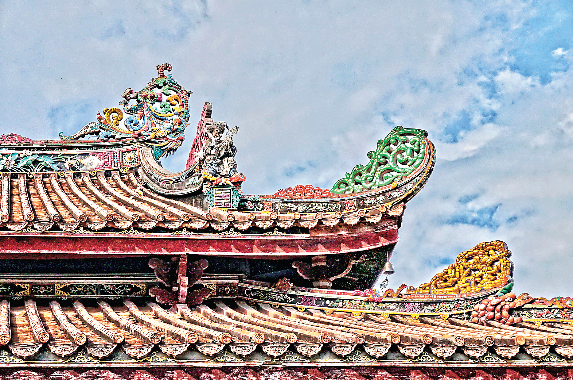 潮州古城裏還坐落着「粵東第一古剎」——開元寺,建於唐玄宗年間,又凝結了宋、元、明、清歷代的建築藝術精華,香火鼎盛。寺內最引人矚目的除了莊嚴肅穆的佛像,便是那亮麗的簷上飛彩。國家級非遺嵌瓷是潮汕地區利用各色彩瓷碎片裁剪鑲嵌成各式圖樣的特色工藝,我們能在開元寺的屋簷上看到獅子、仙鶴、鳳凰等栩栩如生的嵌瓷形象。因找不到一模一樣的陶瓷碎片,這些嵌瓷藝術品多由匠人現場發揮,件件獨一無二。