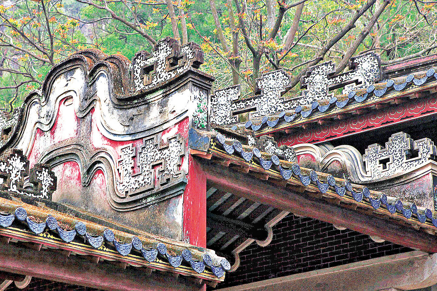 走過廣濟橋,來到韓江對岸的韓文公祠,這是中國現存最早紀念韓愈的祠廟,我們能在這看到特別的白色嵌瓷屋簷。這些白色嵌瓷組合成梅蘭竹菊,清雅高遠,如永不會融化的皚皚白雪積壓在簷上,亦象徵着韓文公高潔的品行流傳至今。