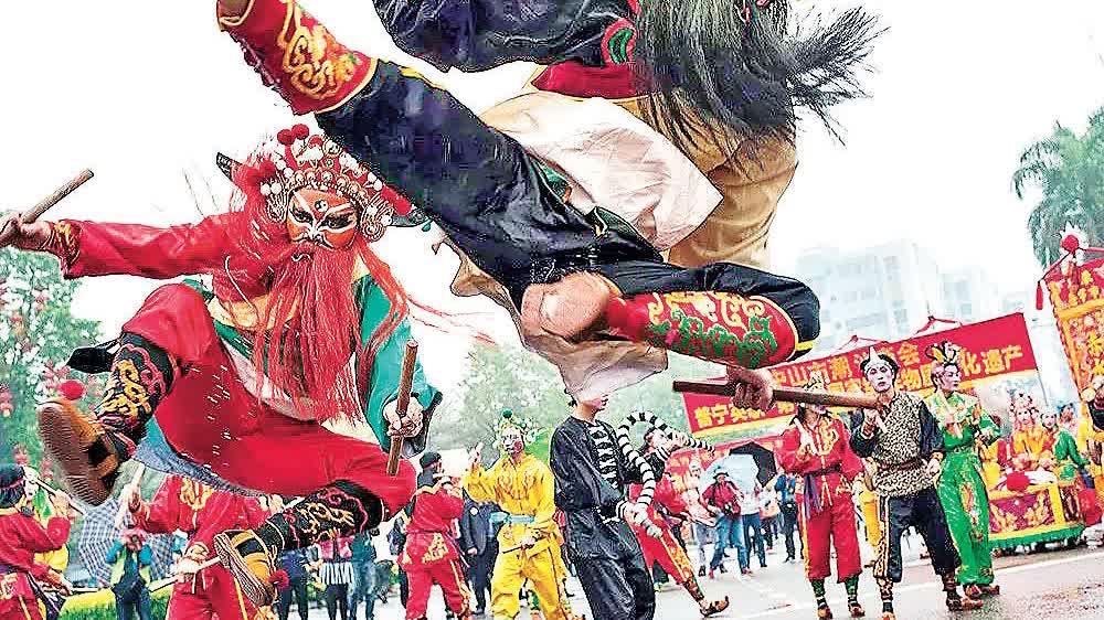 廣濟橋西邊連接着潮州古城的東門,古城中心是由22組石牌坊組成的牌坊街,兩側是中西合璧的騎樓群,這裏集非物質文化遺產、傳統工藝、小吃為一體,讓你一次逛遍潮州特色。每逢節假日,牌坊街可能會上演今年在內地網絡爆紅的國家級非遺——英歌舞,表演者手起槌落之間扣響整齊劃一的節奏,騰飛間蘊含武術的一招一式,怒吼出潮州人勇往直前的拚搏精神。