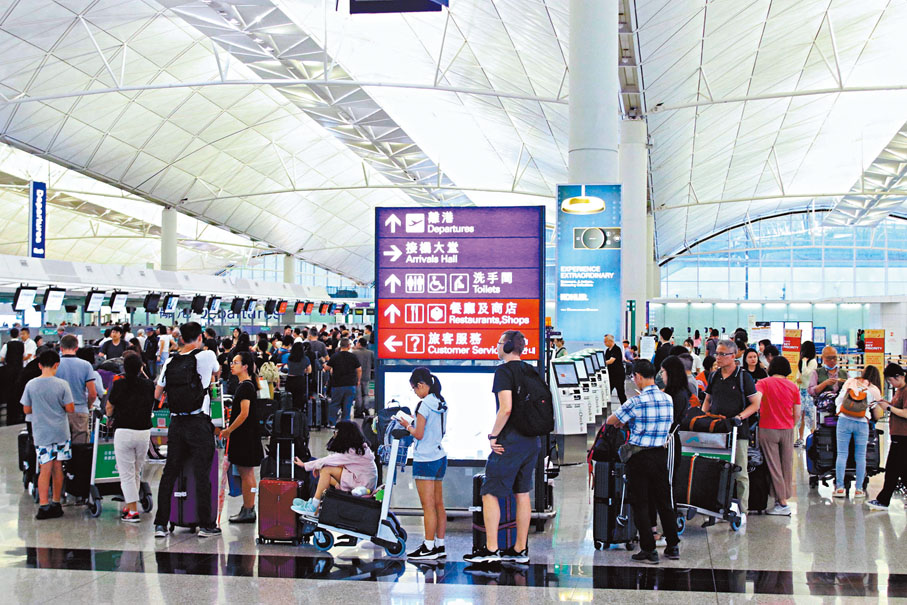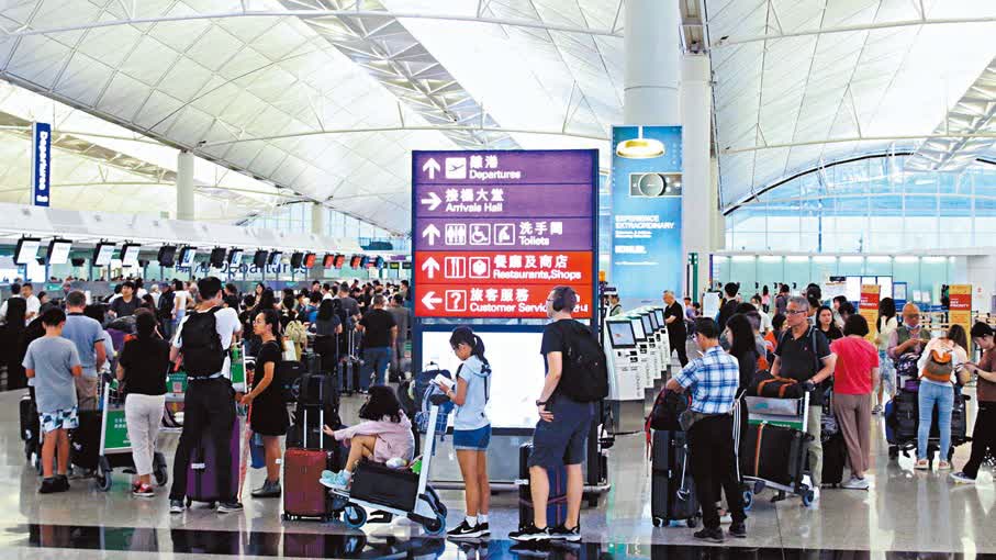 香港機場昨日早上離港安檢一度大排長龍,現場水洩不通,機管局啟動緊急應變中心增派人手加強服務,機場快線及東涌線維持行駛,來往東涌的接駁巴士亦提供有限度服務。
