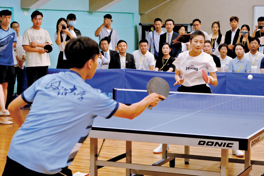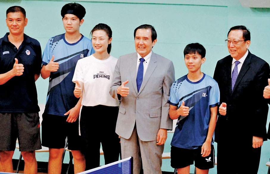 訪團當天下午還參訪了台灣政治大學,台當局前領導人馬英九也參與其中。在閉門座談交流之後,主辦單位安排乒乓球切磋活動,由丁寧帶頭,與學生進行友誼賽。友誼賽過程中,馬英九、郝平等人在旁觀賽,比賽過程精彩,觀眾席掌聲連連。賽後丁寧向現場學生示範了不同發球技巧、進攻技術,也親自帶領台灣學生做練習。