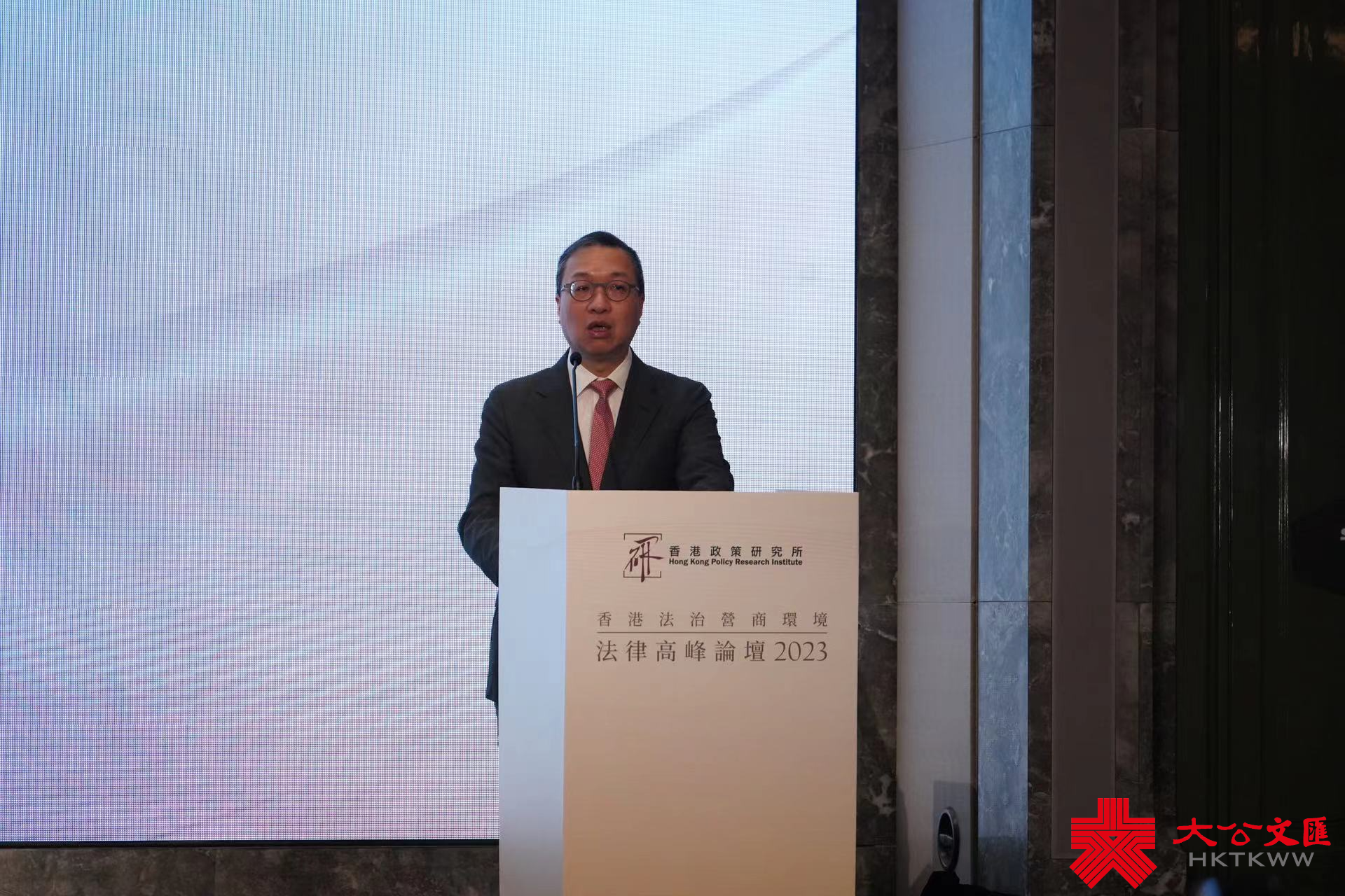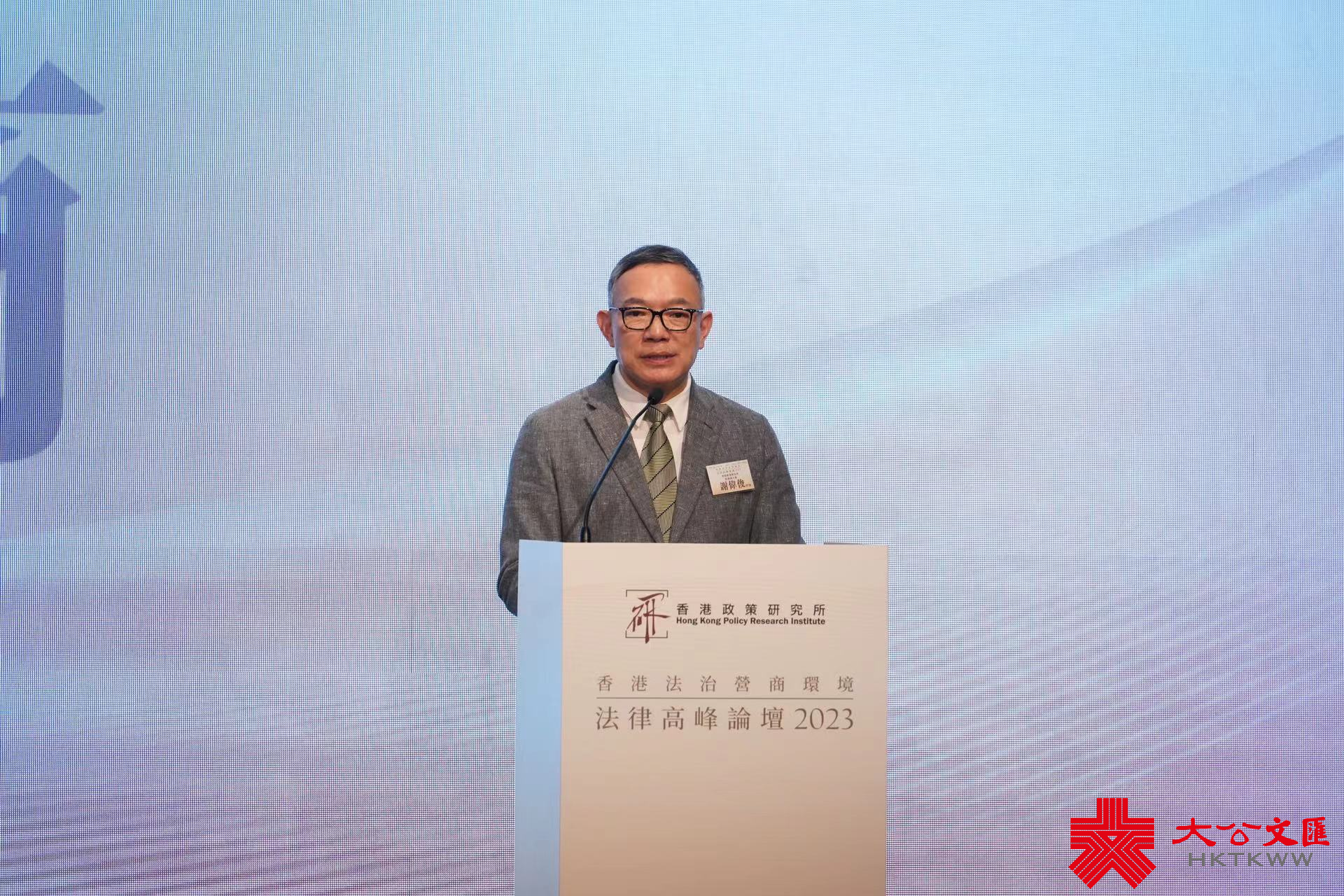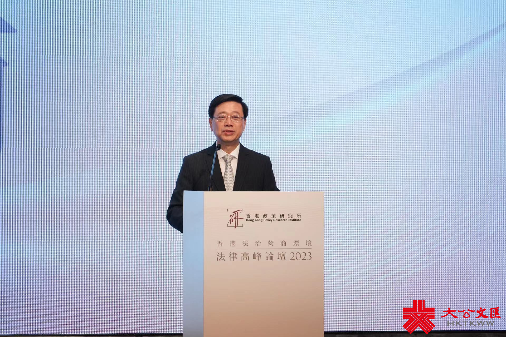 (大公文匯全媒體記者 周傾芫)當法治與營商元素碰撞在一起,將營造出更加穩健的法治營商環境。2023法律高峰論壇今日(18日)在香港舉行。行政長官李家超在致辭中開宗明義地指出,香港具有「法治」和「營商」的雙重優勢——香港與多個經濟體簽訂貿易投資協定,同時眾多法律組織落戶香港,香港為世界各地糾紛提供專業的法律服務。他延續上周在行政長官答問會上提及的「法律人才」話題,認為香港應在全球法律體系中加強話語權和影響力。