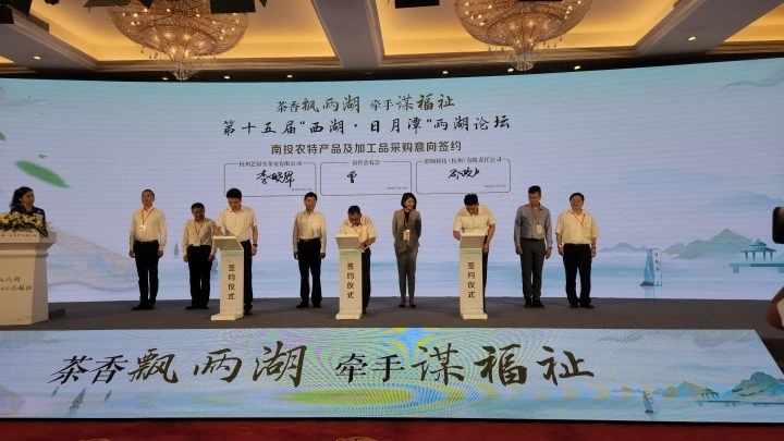 (大公文匯網記者 王莉)17日,以「茶香飄兩岸、牽手謀福祉」為主題的第十五屆「西湖·日月潭」兩湖論壇在浙江杭州舉行。時隔三年,來自杭州與台灣南投的兩岸嘉賓,再度線下相聚,共同探討鄉村振興、體育教育和茶產業發展等議題。