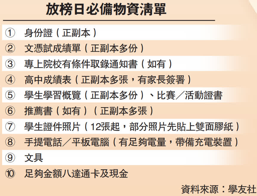 此外,學友社稱大學資助學士課程約1.5萬個名額,扣除非聯招的學額,預計八大院校透過聯招,招收1.3萬名學生,推算約每1.34名合資格考生爭一個資助大學學額。