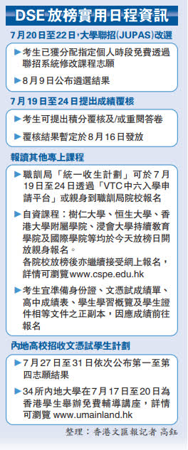 對今屆DSE考生的升學前景,升學專家、學友社學生輔導顧問吳寶城分析,今年最佳5科獲18分或以上者有13,726人,而8大聯招學額只有1.25萬個,加上要考慮大學彈性收生安排及各課程收生科目比重等因素,估計考生需要獲20分或以上才較大機會獲取錄。