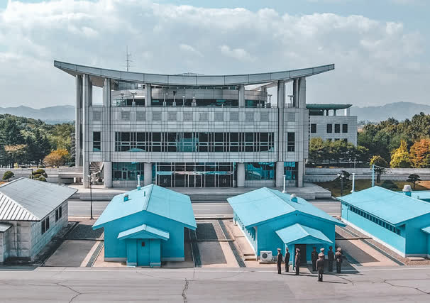 板門店建有獨特的淺藍色建築物,疫情結束後恢復向遊客開放。按照規定,板門店限制車輛進出,普通民眾未出示身份證明文件不得進入,外國人則必須報名旅行團才能參觀,且需出示護照。