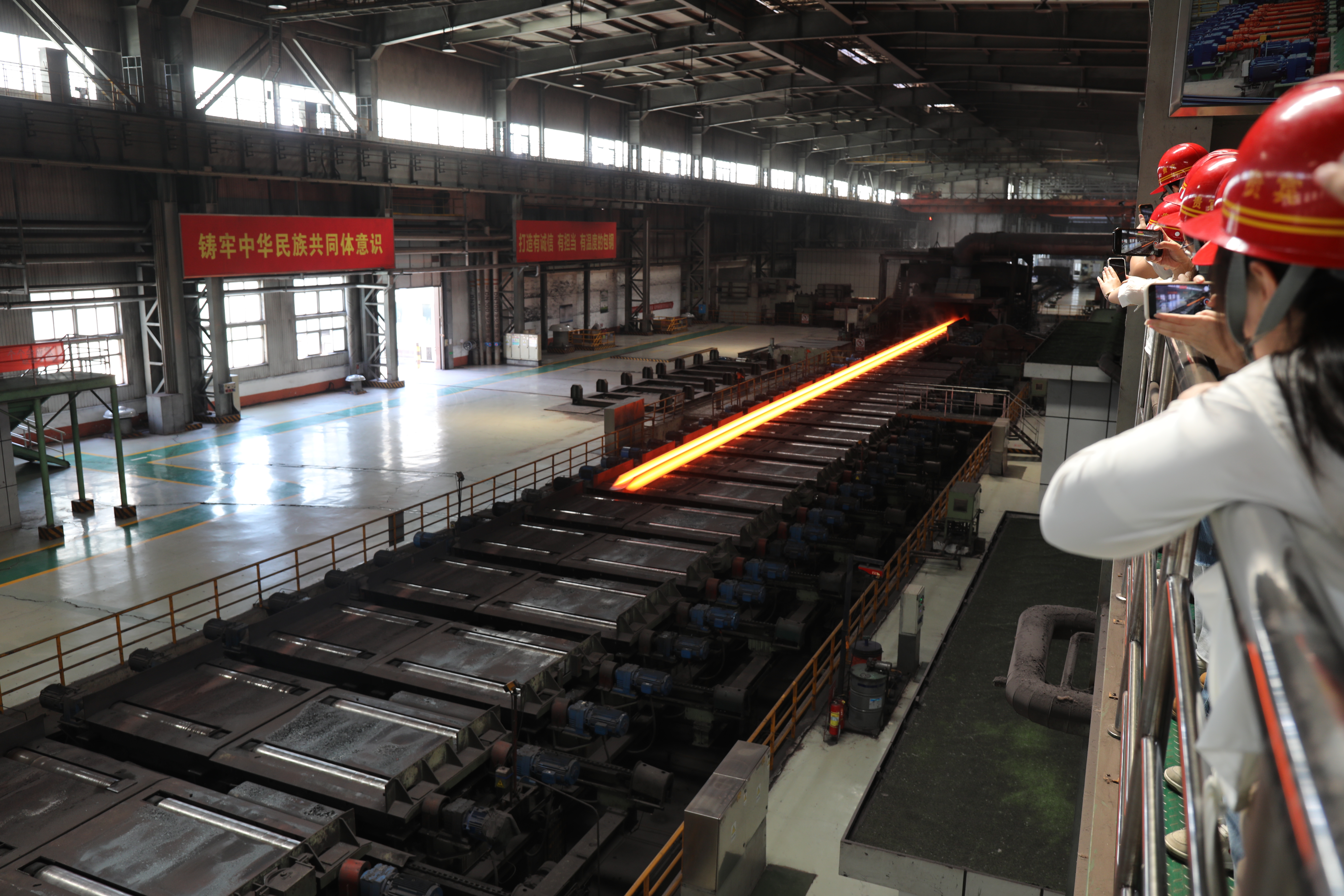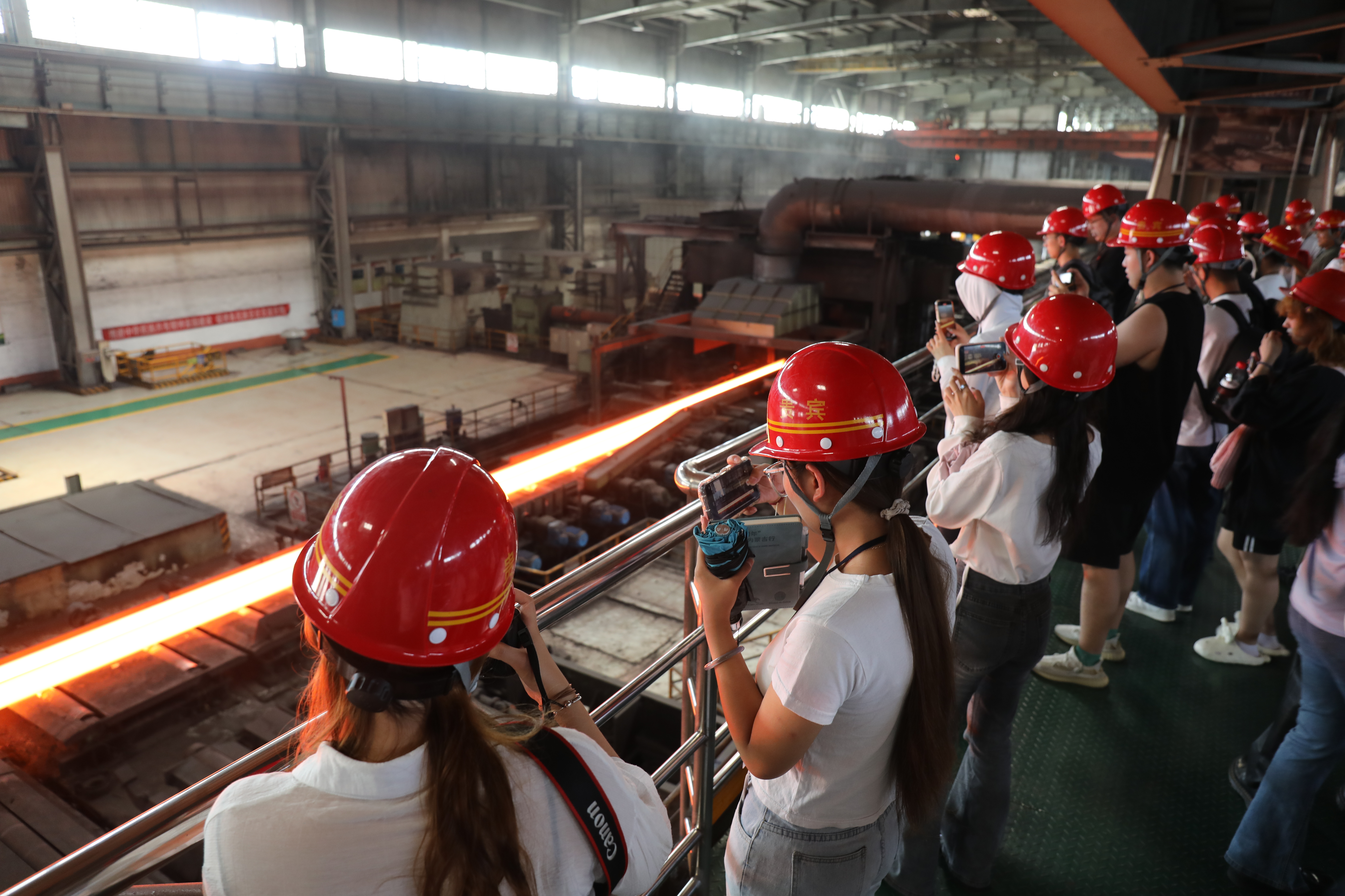 此外,同學們來到包鋼軌梁廠2#大型萬能軋鋼生產線參觀被軋機轟鳴,火紅的鋼坯在上千米長的萬能軋鋼生產線上被擠壓延長,經過反覆軋制,在生產線末端變成一根根高速鋼軌的場景折服。
