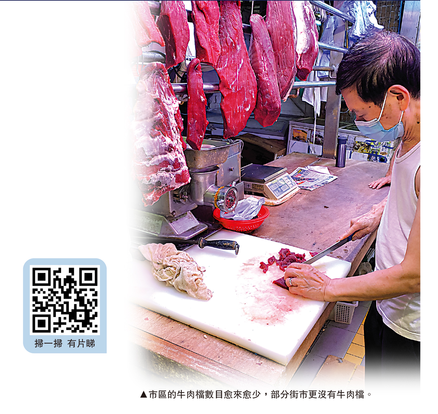 大公報記者日前到各區公眾街市觀察,發現市區的牛肉檔數目甚少,有街市更無牛肉檔。業內人士直指行內青黃不接,加上新鮮牛肉價格不斷上升,坦言行業正在不斷萎縮。有業內人士指出,肉檔老師傅退休後無年輕一輩肯接手,不排除日後豬肉也會出現同樣問題。有立法會議員認為本港新鮮牛肉價格高昂的情況需要正視,以免日後鮮牛肉食材消失,恐影響香港美食天堂聲譽。