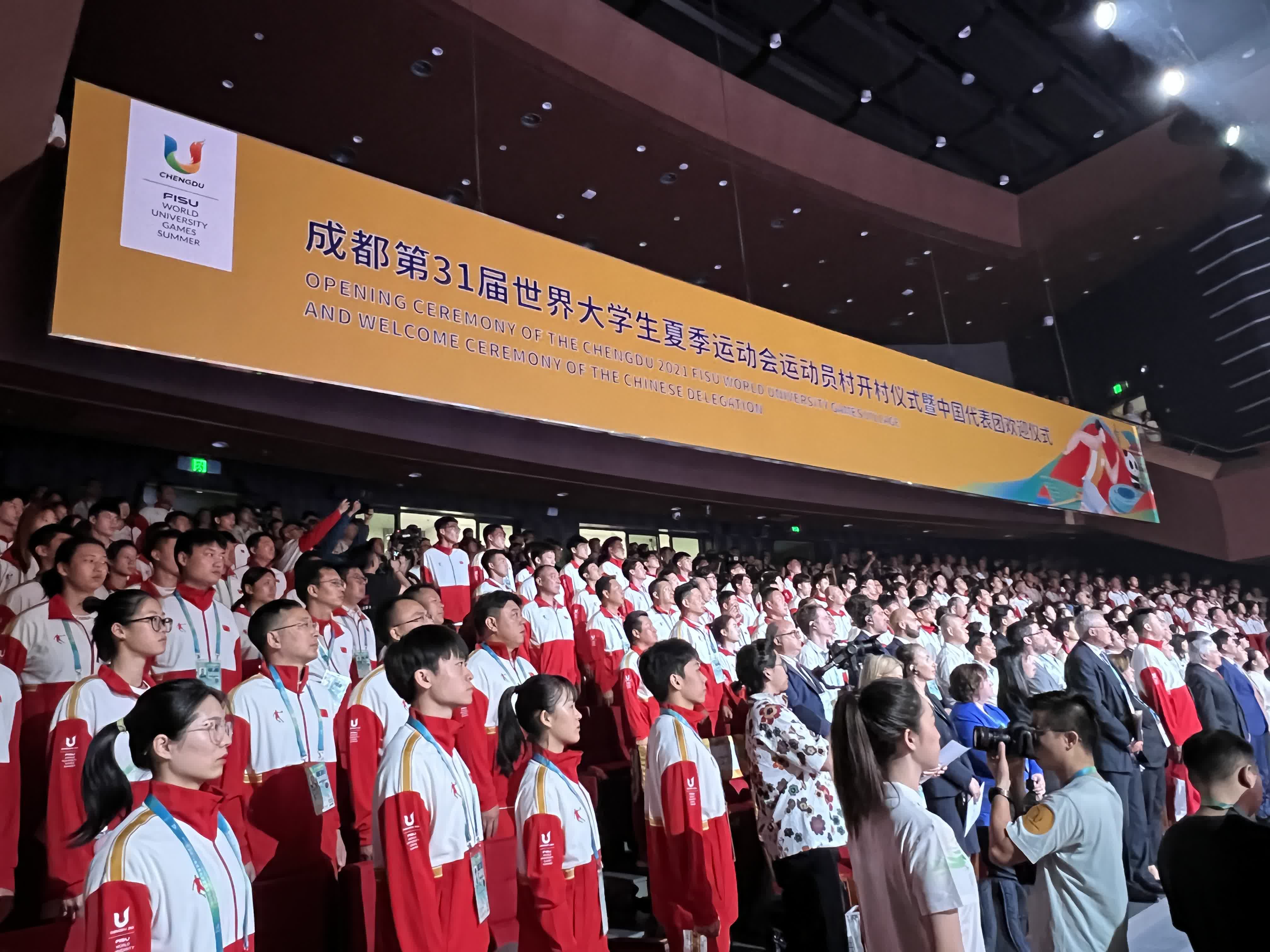 據央視新聞報道,今日(22日)上午,成都第31屆世界大學生夏季運動會運動員村開村儀式暨中國大學生體育代表團歡迎儀式在運動員村舉行。儀式上首先升起了中華人民共和國國旗、隨後升起了國際大體聯會旗、中國大體協會旗和成都大運會組委會會旗,以及中國代表團旗幟。