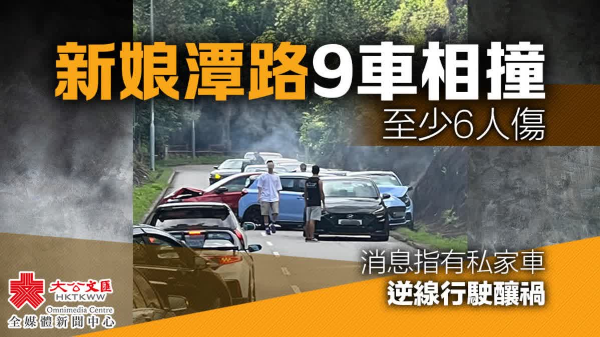 大公文匯全媒體報道,今(23日)晨7時43分,6輛私家車沿新娘潭路往大埔方向行駛,期間在降下坳營地對開發生意外,部分私家車被擠壓越過對面線。據初步了解,意外至少釀成5人受傷,幸各人傷勢均不嚴重,分別由救護車送院治理。