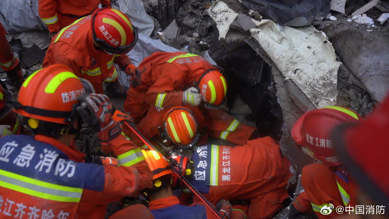 事故發生後,支隊指揮中心立即調派39輛消防車、159名指戰員、4頭搜救犬趕赴現場救援,支隊全勤指揮部遂行出動。15時10分,首批消防救援力量到達現場展開救援。黑龍江消防救援總隊調派大慶市消防救援支隊重型地震救援隊12輛消防車、94名指戰員、4頭搜救犬前往增援,增援隊伍已全部到達現場開展救援。