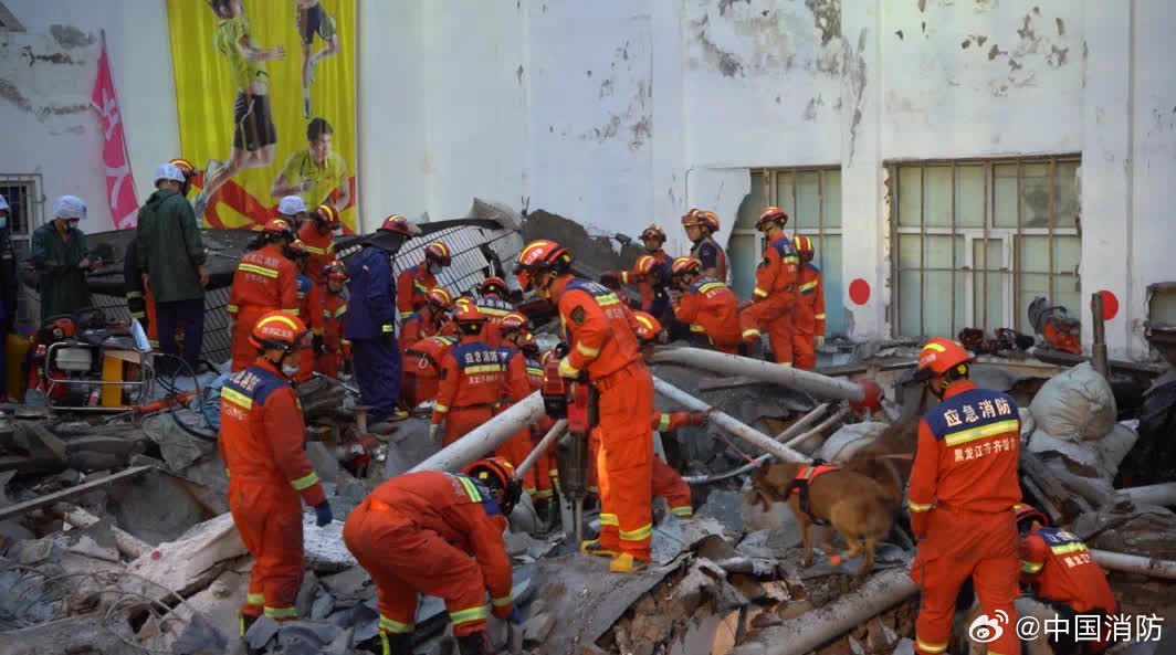 據中國消防微博消息,7月23日下午,黑龍江省齊齊哈爾市第三十四中學一體育館發生坍塌,事故造成多人被困。事故發生後,消防救援力量第一時間趕赴現場救援,經過多方共同努力,19時14分第十名被困者獲救。22時25分,事故中第11名被困者被救出。截止目前,救援工作仍在進行中。