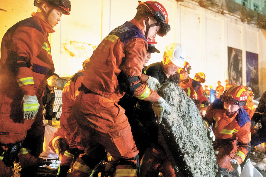 「我和我的工人們從昨天下午一直幹到今天(24日)早上7點。」李晨介紹,因為坍塌,現場有大量建築垃圾,他們的主要任務就是清理轉運這些建築垃圾,「有混凝土塊、苯板什麼的」。李晨組織工人形成流水線,「人倒人的方式比較快,我在現場負責指揮工人」。