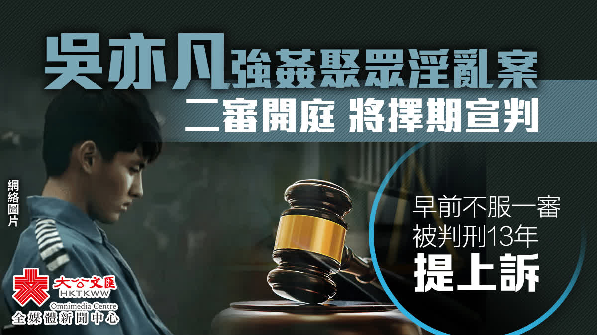 2022年11月25日,北京市朝陽區人民法院對該案作出一審判決,對被告人吳亦凡以強姦罪判處有期徒刑十一年六個月,附加驅逐出境;以聚眾淫亂罪判處有期徒刑一年十個月,數罪併罰,決定執行有期徒刑十三年,附加驅逐出境。被告人吳亦凡不服,向北京市第三中級人民法院提起上訴。