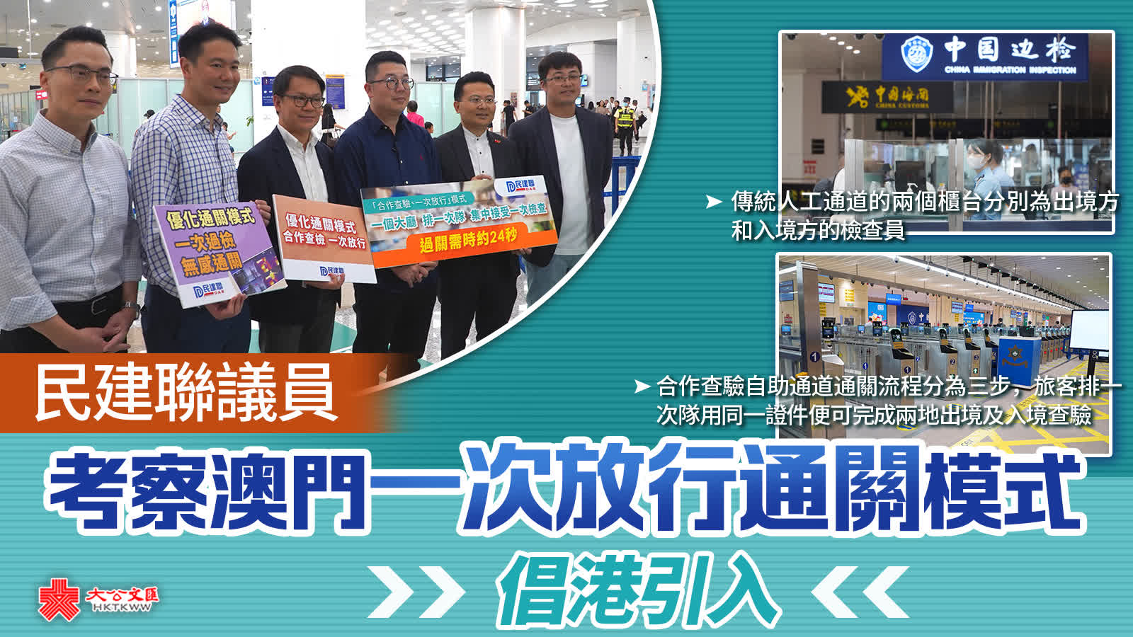 (大公文匯全媒體記者 李九歌)民建聯於本月召開記者會,建議透過參考澳門珠海的口岸經驗,在香港的重建、升級改造或新口岸落實「合作查驗、一次放行」或「一次過檢、無感通關」模式,為居民及旅客提供更好通關體驗。民建聯立法會議員陳勇、陳克勤、劉國勳、周浩鼎、梁熙、顏汶羽等,今日(26日)到澳門的青茂口岸和橫琴口岸進行考察,了解模式詳情。
