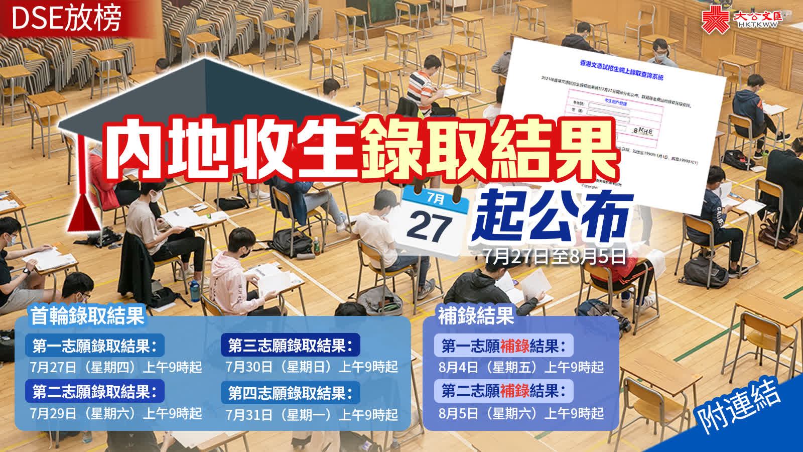 大公文匯全媒體報道,教育局今日(27日)提醒已完成內地高校招收香港中學文憑考試學生計劃網上報名及確認程序的同學,於7月27日至8月5日期間,登入指定網址查閱錄取結果、遞交補錄申請及查閱補錄階段的錄取結果。