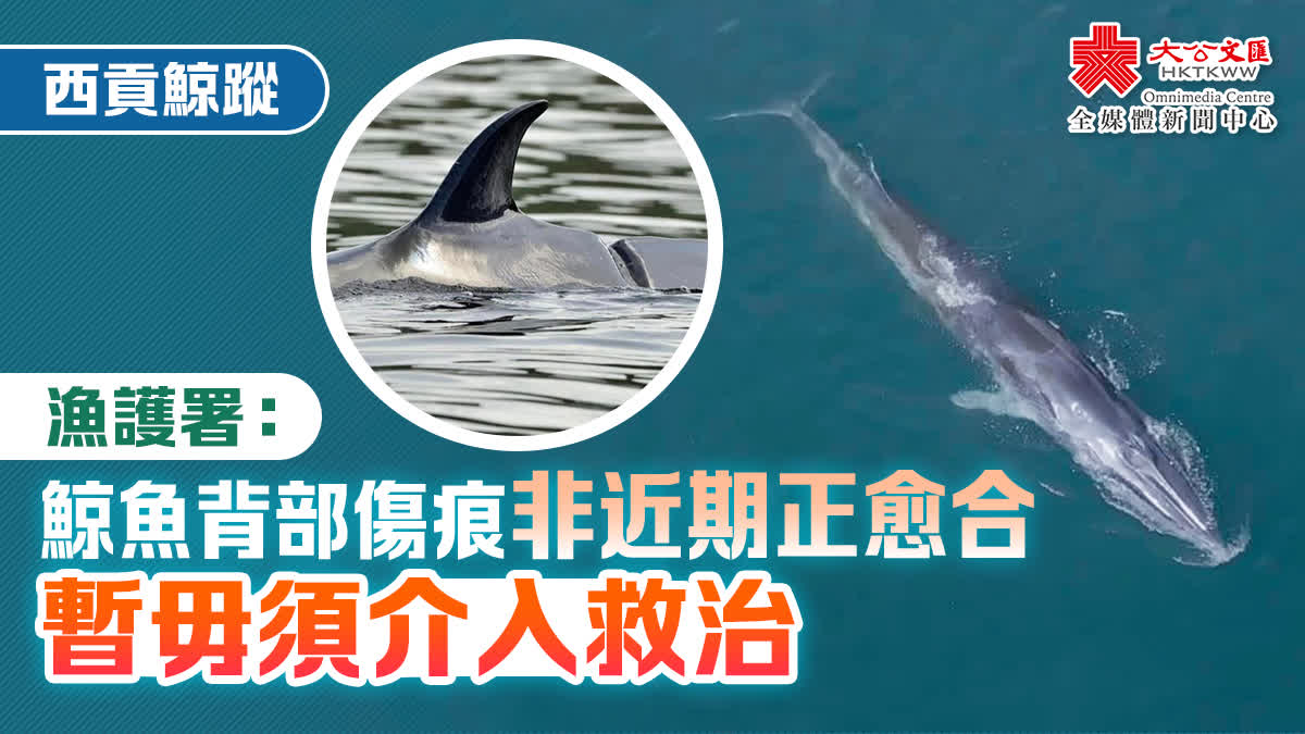 大公文匯全媒體報道,在西貢海域出沒的布氏鯨成為本港「風頭躉」,近日卻被發現其背部出現由螺旋槳造成的傷痕,以致大眾關注其健康及安全。漁護署今日(27日)表示,署方與香港海洋公園保育基金及其他環保團體的專家,均同意有關傷痕並非近期受傷所致,並指由於鯨魚情況穩定,有能力進食及游動,傷口亦在愈合,未有患病及擱淺的行為表現,故現時並沒有需要作出救治或其他介入行動。
