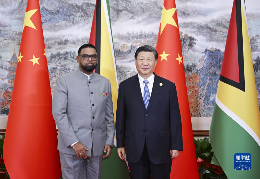 習近平指出,中國和圭亞那雖然相距遙遠,但友誼源遠流長。圭亞那是加勒比地區最早承認一個中國原則並同新中國建交的國家。去年,中圭隆重慶祝了建交50周年。近年來,圭亞那經濟快速發展,國家建設日新月異,中國正在以高質量發展全面推進中國式現代化。中圭兩國要做彼此信賴、相互倚重的好朋友,共享機遇、共迎挑戰、共謀合作、共促發展,推動構建更加緊密的中圭命運共同體。