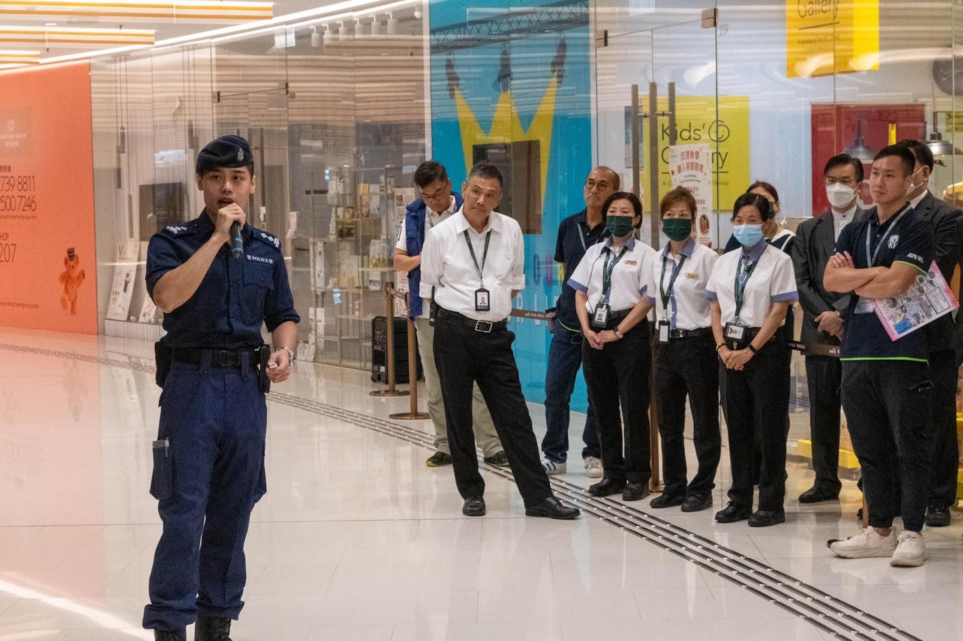 另外,警員亦向物業管理代表、保安業界人士、荃灣民政處、荃灣區區議員、荃灣區撲滅罪行委員會及警隊學長計劃成員示範如何在人流密集的商場或範圍內處理持武器的兇暴人士。其後,人員亦展示衝鋒隊日常所使用的裝備,及向在場人士分享如何在現場與警方互相協調以提升行動效率。