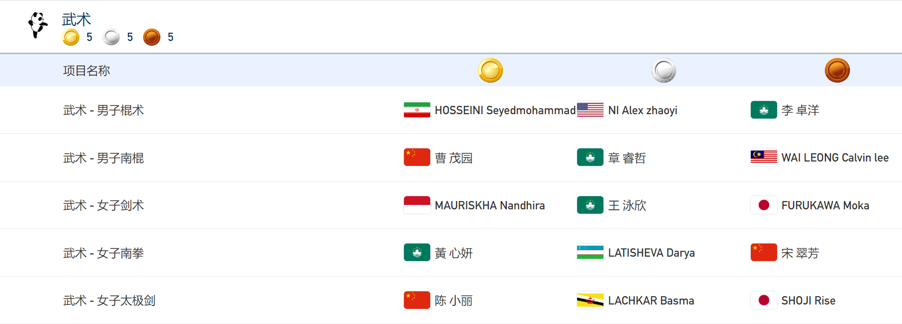 昨日獲得女子南刀金牌的中國選手宋翠芳,今日以9.630分的成績再奪得女子南拳的銅牌。