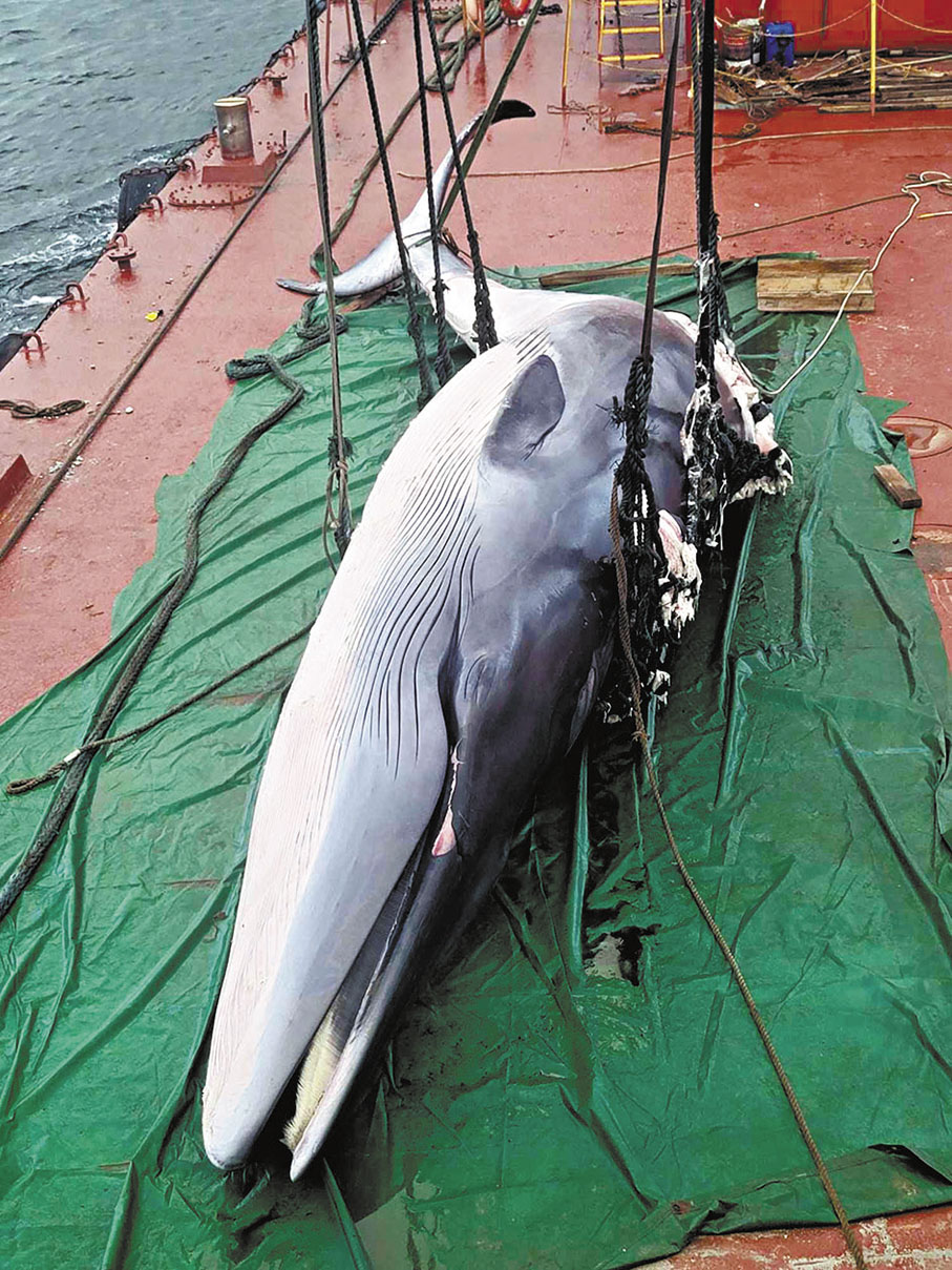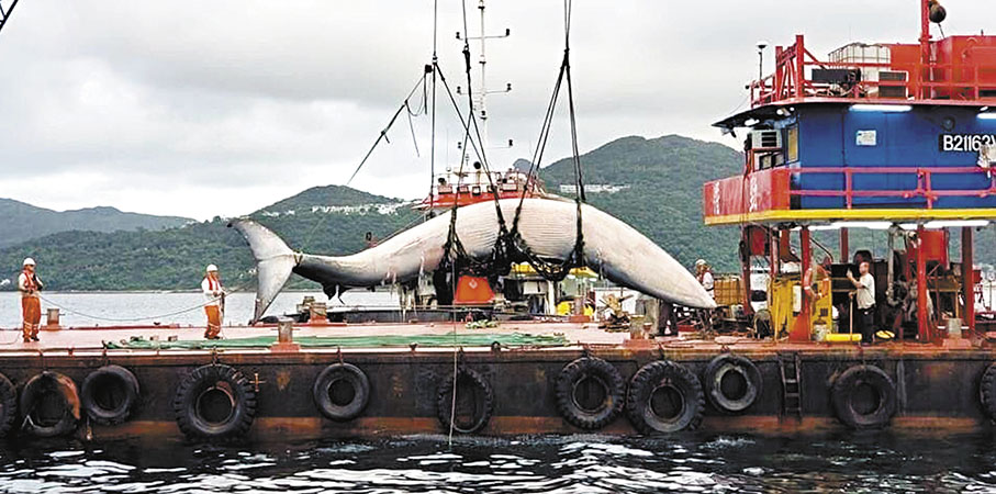 (香港文匯報 記者 文禮願、吳健怡、文森)一條長約七米、屬國家重點保護野生動物名單上一級類別的布氏鯨,於早前誤闖香港水域,在流連兩星期後,昨日證實浮屍西貢牛尾洲對開。經打撈後,鯨魚屍體被拖至西貢萬宜水庫西壩日內完成解剖查證死因。海洋公園專家初步檢查發現,牠背鰭正中位置有新傷口,相信死去不久。事件敲響保護海洋生物的警號,有保育人士指出,香港水域有海豚、海龜等瀕危海洋生物出沒,但目前《觀豚守則》只規管觀豚活動,且屬自願性質,建議政府立法監管所有觀賞瀕危海洋生物的活動、為船隻螺旋槳加上保護罩,以及藉今次悲劇進行公眾教育,讓香港水域成為海洋天堂。