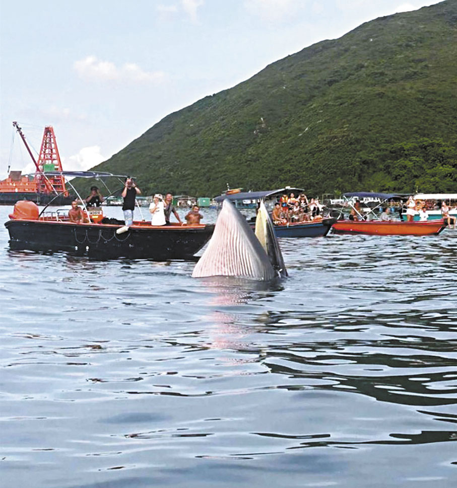 警方在糧船灣海發現一條鯨魚。有人租船出海「賞鯨」。海洋公園保育基金及其他保育團體呼籲市民與鯨魚保持距離。