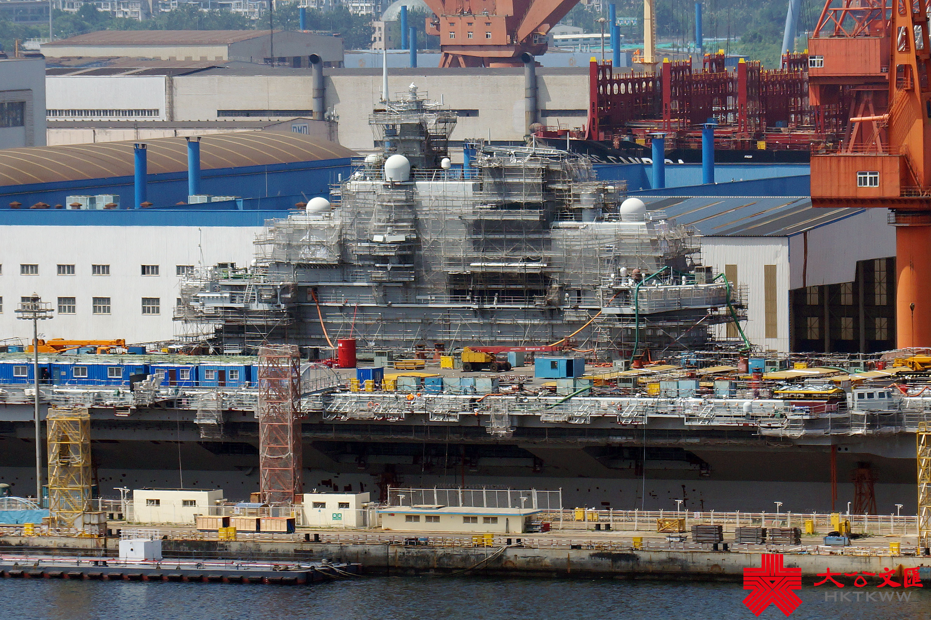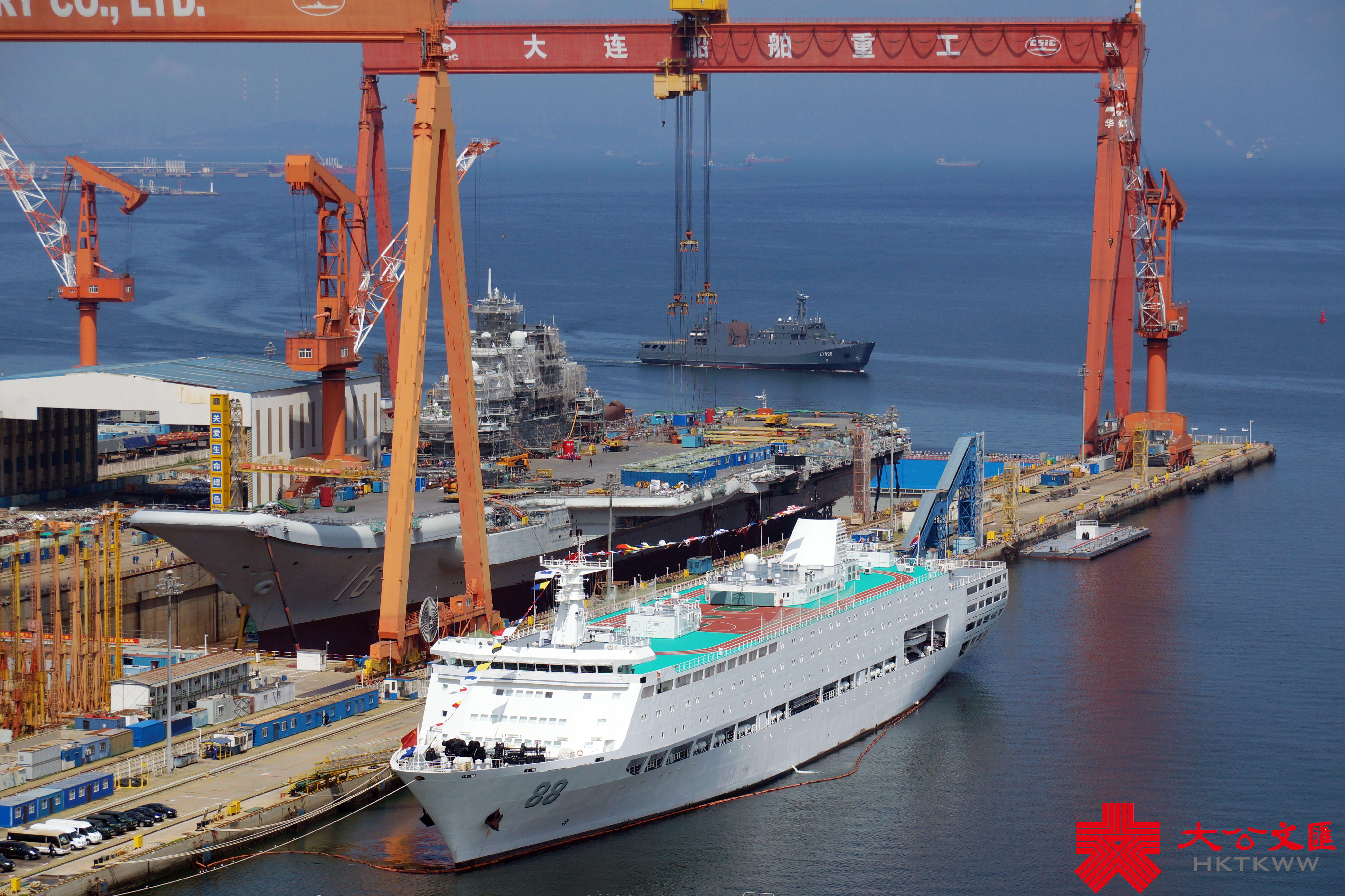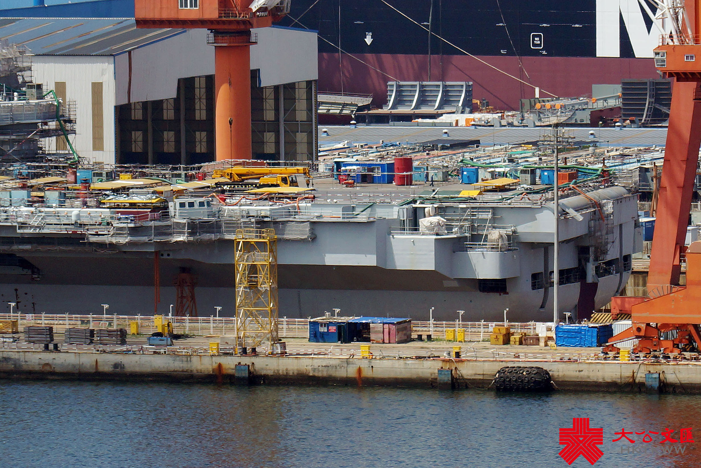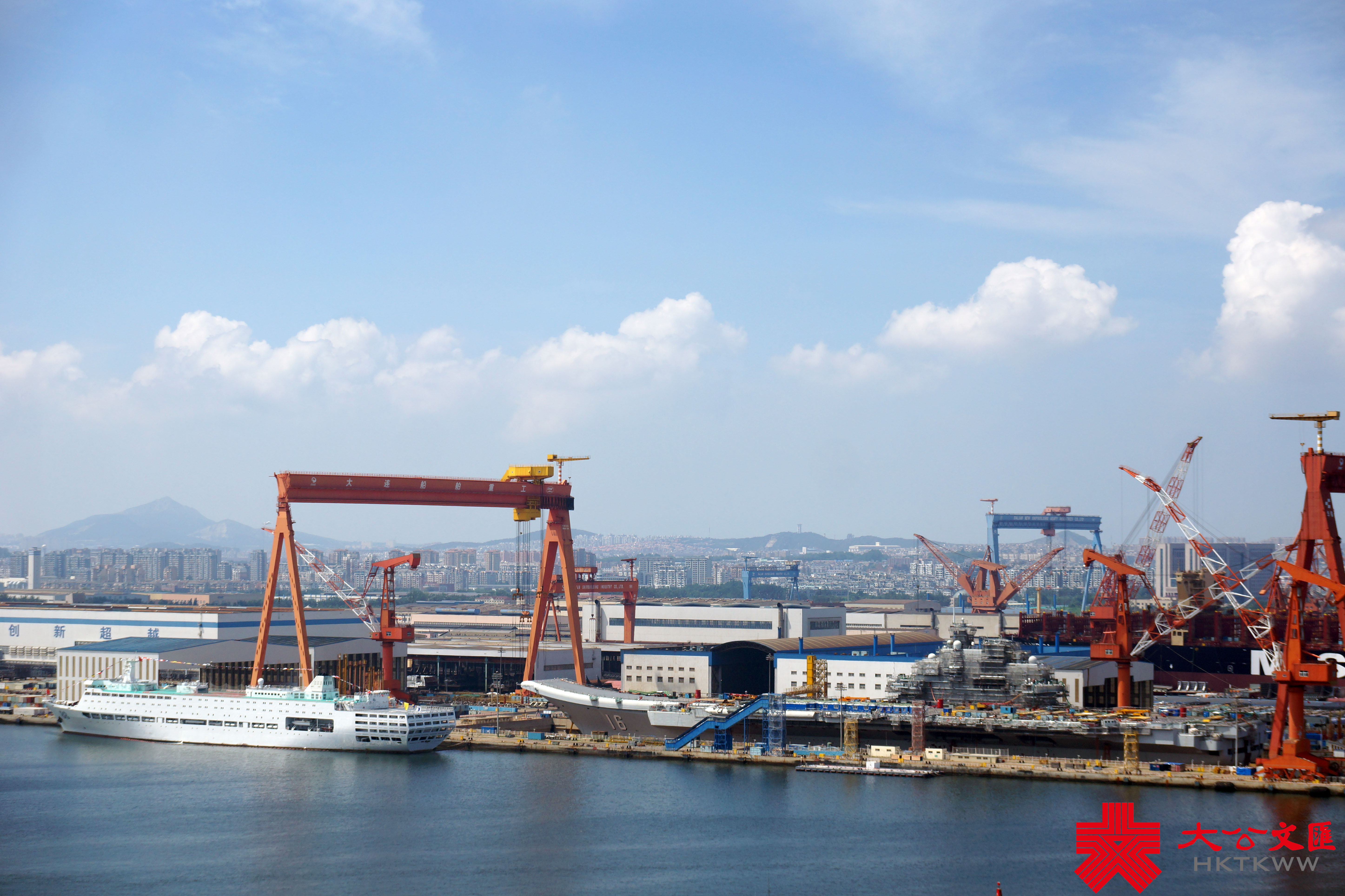 (大公文匯網記者 宋偉)今日(1日)是八一建軍節,中國人民解放軍已走過96年光輝歷程。在大連造船廠,中國首艘航母綜合保障船「向前進一號」(舷號88)懸掛滿旗歡慶建軍節。首艘航母遼寧艦正在塢內升級改造,艦島密布腳手架,甲板遍布重型機械及設備艙箱,碼頭掛出確保遼寧艦項目按期完成標語。今年2月28日,遼寧艦按計劃返回大連造船廠,對主機鍋爐等一系列部件進行維修、保養和升級改造,施工至今已滿5個月。升級改造期間,遼寧艦官兵還緊貼實戰構設場景,開展航空部門2023年度艦用叉車專業技能比武等練兵活動。