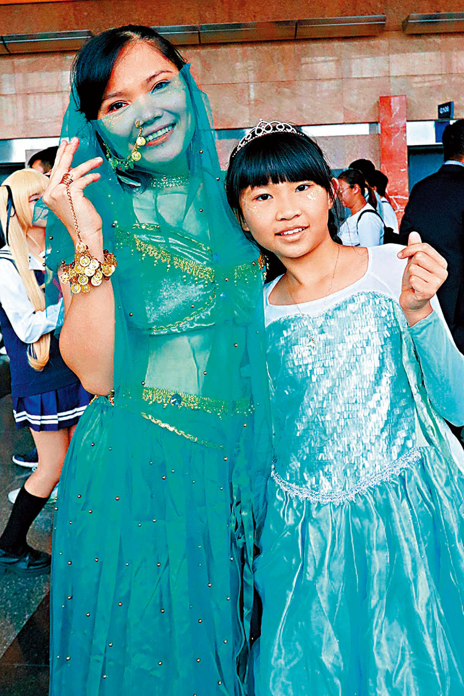 動漫節也是不少家庭的「同樂日」,有一家大細化身為動畫片中的角色,其樂融融。有5年Cosplay經驗的龍女士一直很喜歡打扮成迪士尼中的公主角色,因此這次她打扮成茉莉公主,其女兒則變身「魔雪奇緣」中的迷你Else,兒子也扮演為超級英雄蜘蛛俠。